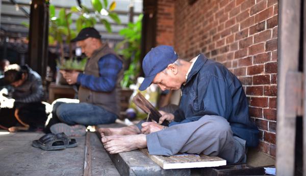 Ici, comme partout au Népal, il existe mille et un petits métiers. En général, les artisans d’un même corps de métiers sont rassemblés entre eux, comme ici, les sculpteurs sur bois.