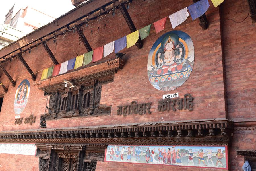 Construit en 1708, le temple de Nyatapola offre vraiment une vue exceptionnelle sur toute la place cernée de vieilles maisons newar, du nom des premiers peuples s’étant installé dans le pays. À gauche, le temple de Bhairava se dresse sur trois étages.