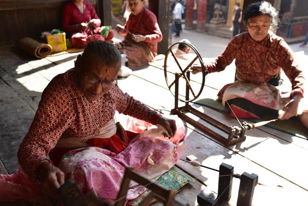 Il nous faudra une bonne heure pour rallier Bhaktapur située à 14 km de là ! Les bus à Katmandou, c’est le dépaysement assuré. Pas une minute sans qu’il ne s’arrête pour prendre ou déposer des voyageurs. Un rabatteur s’accroche aux portes ouvertes de l’autobus et hèle les gens et les stations. L’aventure, c’est l’aventure !