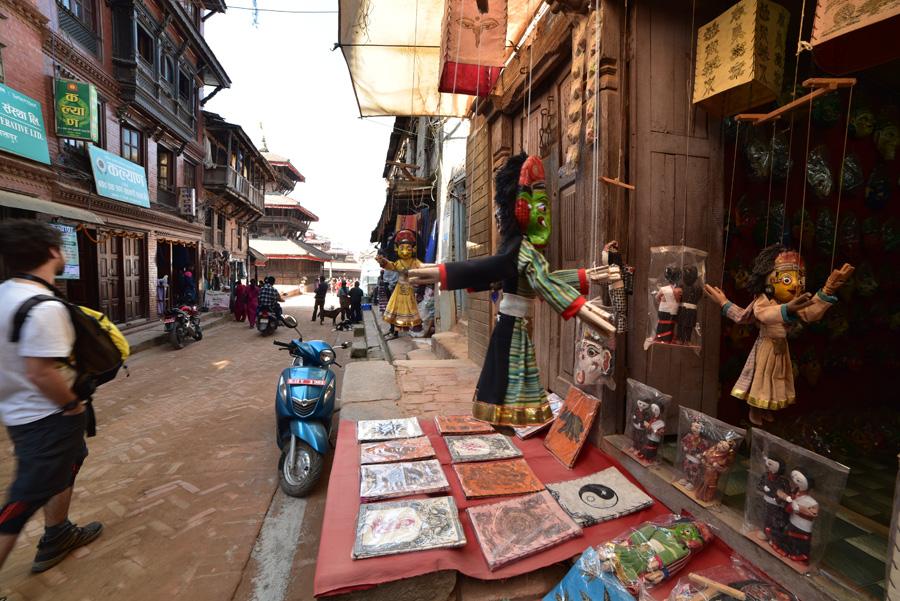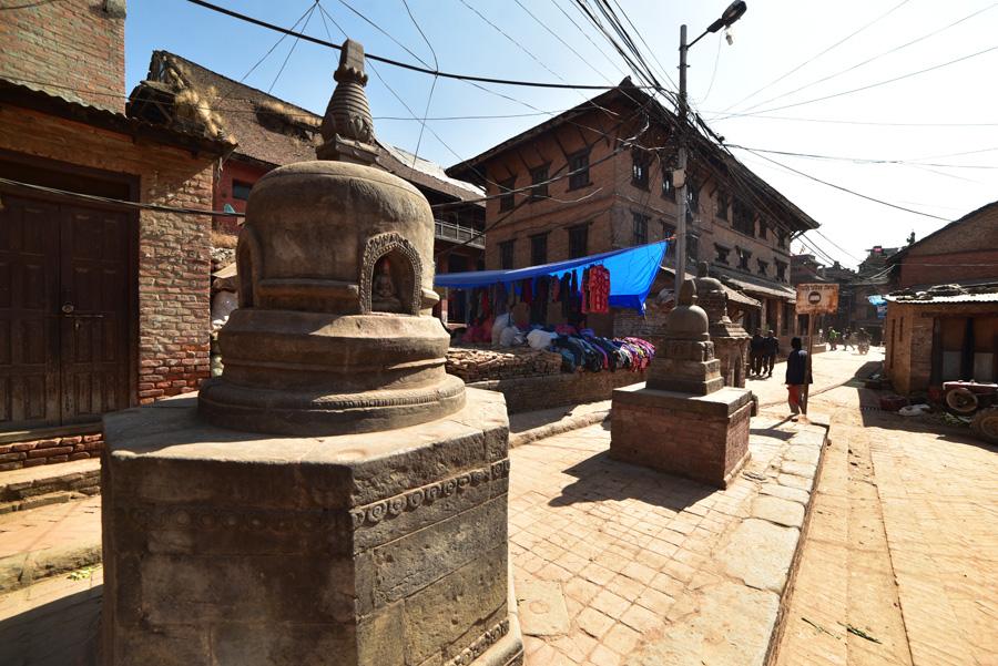 Bon voilà, nous voici enfin arrivés à Bhaktapur. Le bus nous laisse à l’entrée est du site, à l’opposé de l’entrée principale. Mais du coup, on prend non seulement tout le temps pour visiter sans la cohue des autres touristes, mais on va aller crescendo. Cool. Le hasard fait bien les choses. Ok, on paye 1.000 roupies pour pénétrer à l’intérieur de la vieille ville et on s’engage dans la rue principale.