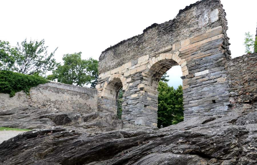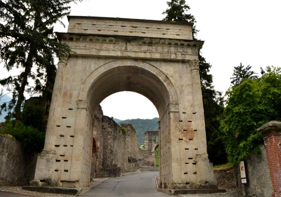 À deux pas de là, se dresse l’un des plus beaux arcs de triomphe de l’antiquité. L’arc de triomphe d’Auguste a été dressé en l’an 8 apr. J.-C. sur la voie des Gaules pour célébrer la paix avec le leader local Cottius. Le monument était à l’origine couvert de plaques de marbre blanc étincelant, comme le montrent encore les trous permettant de les fixer avec des tiges métalliques. La frise à son sommet décrit le sacrifice d’un bélier, d’un porc et d’un taureau.