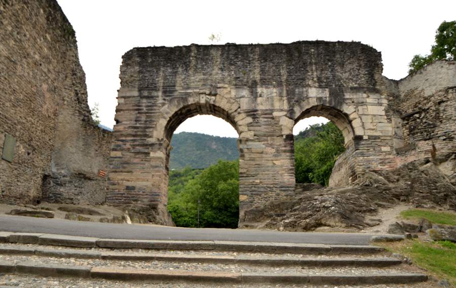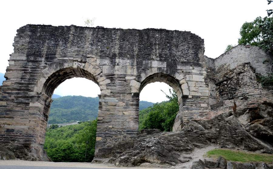 Direction Susa, la porte de l’Italie, à l’ouest de Turin. Le village est réputé pour ses beaux vestiges romains : arc de triomphe, porte fortifiée, amphithéâtre, etc. En se garant à l’entrée de la ville, on accède à la ville antique en passant d’abord près des anciennes fortifications. Une superbe portion d’un ancien aqueduc romain surplombe le chemin.