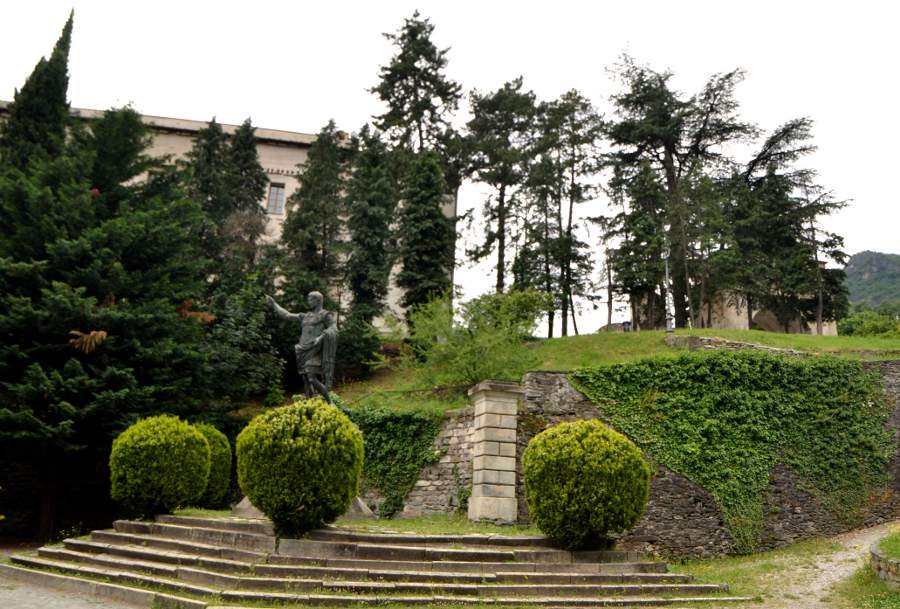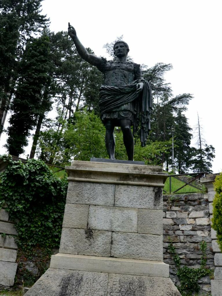Allez zou, un dernier petit regard vers la statue en bronze de l’empereur Auguste qui trône au milieu du jardin du même nom. La statue regarde le superbe clocher roman de la Chiesa Santa Maria Maggiore, la plus vieille église du village.