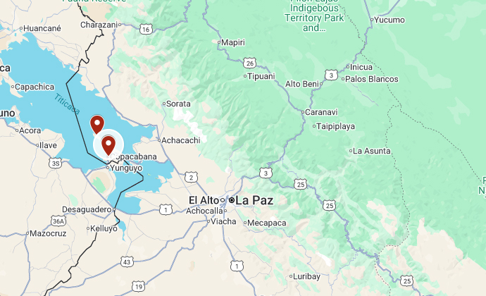 1er jour – Route pour Copacabana – Visite de Copacabana – Coucher de soleil – Nuit à Copacabana.