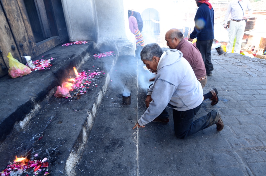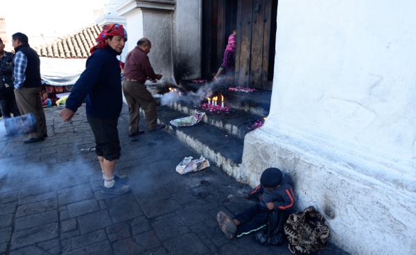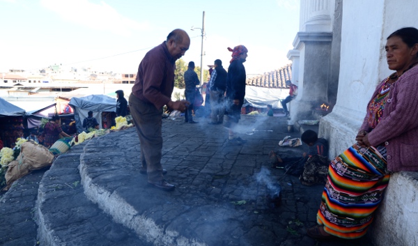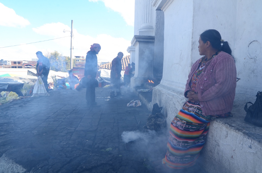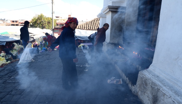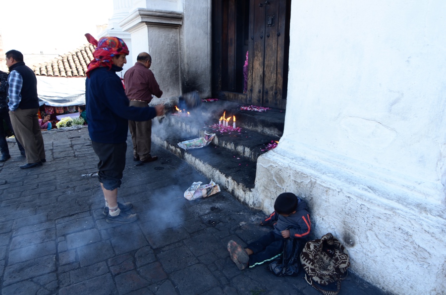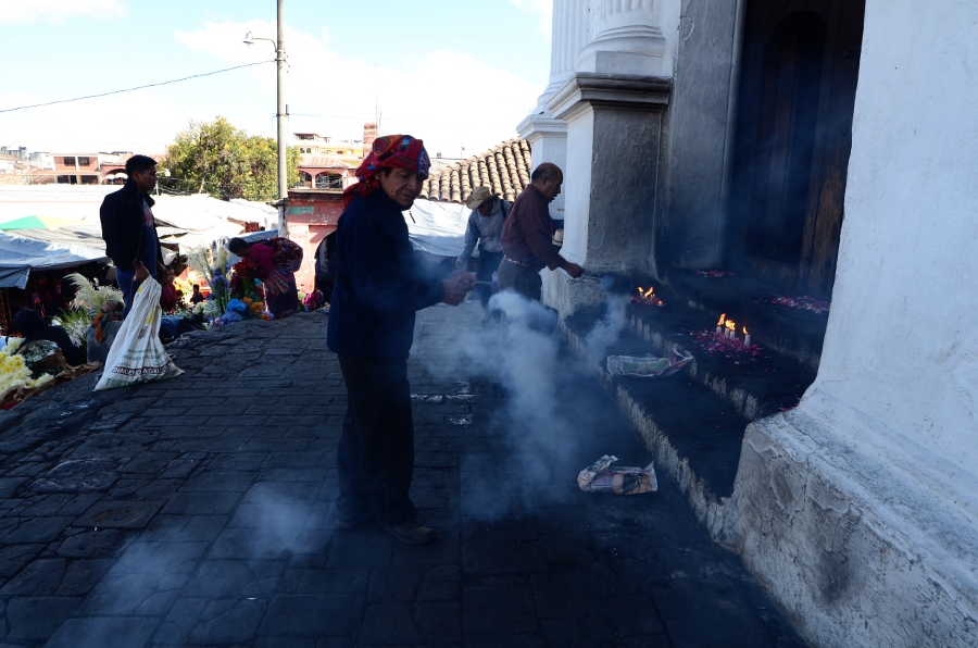 Et en parlant de cérémonie, comment ne pas rester ébahi devant celle qui se tient devant les portes de l’église. Les Indiens mayas viennent jusqu’à la porte pour encenser (au sens propre !) leurs divinités.