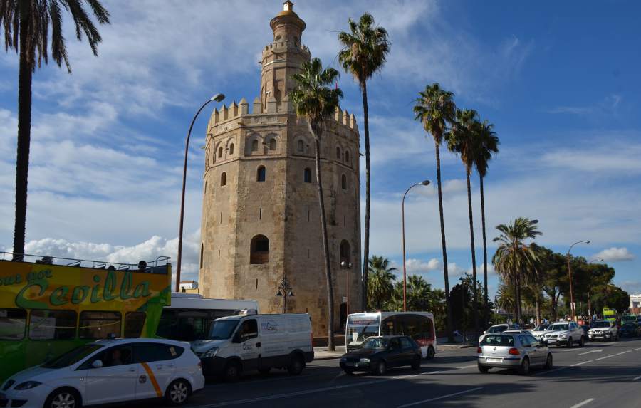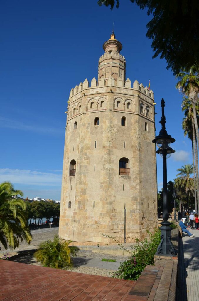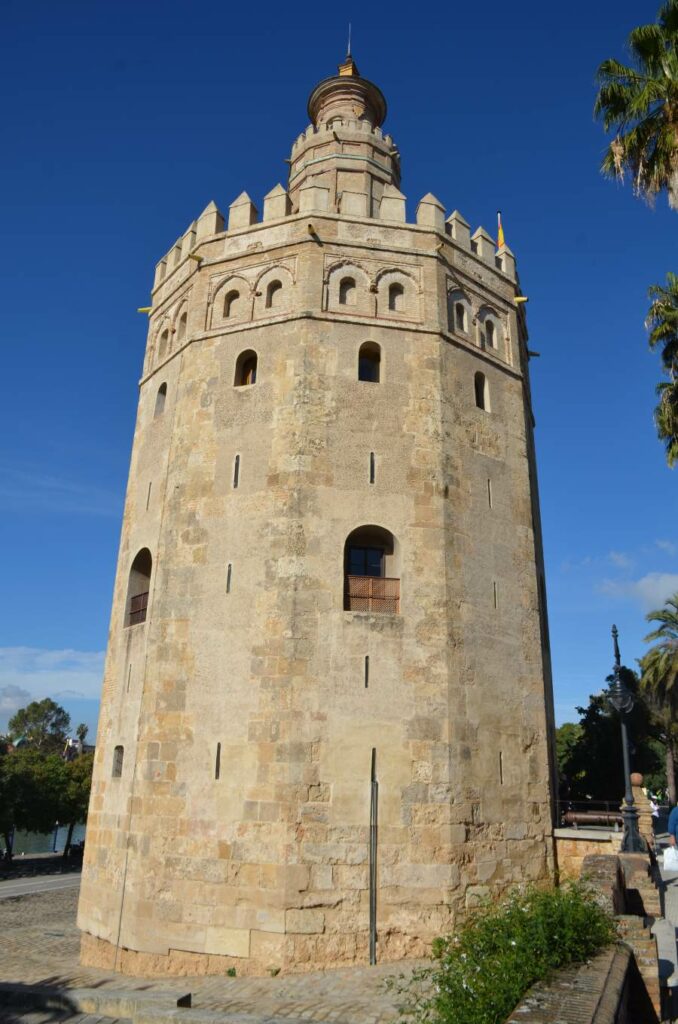 Lundi 24 novembre. À deux pas de l’hospice de la charité, se dresse la Torre del Oro. Une tour qui ne renfermait pas de trésor, malgré son nom. Son nom provient des azulejos dorés qui la recouvraient autrefois… Au Moyen Âge, une énorme chaîne demeurait ancrée autour d’elle et permettait de fermer le port et d’interdire aux vaisseaux ennemis de remonter le Guadalquivir.