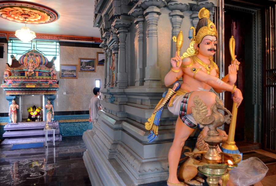 Au sommet de l’île de Penang, le mélange culturel se poursuit. On trouve tour à tour une mosquée, un temple hindou de toute beauté et de très beaux jardins. Des tuks-tuks pressent les touristes désireux de faire une balade dans les environs. On peut même louer des vélos. Cependant, on préfère encore, Léa et moi, escalader le pic de la colline pour aller voir ce magnifique temple hindou. Un peu kitch, très coloré, mais toujours hors du temps.