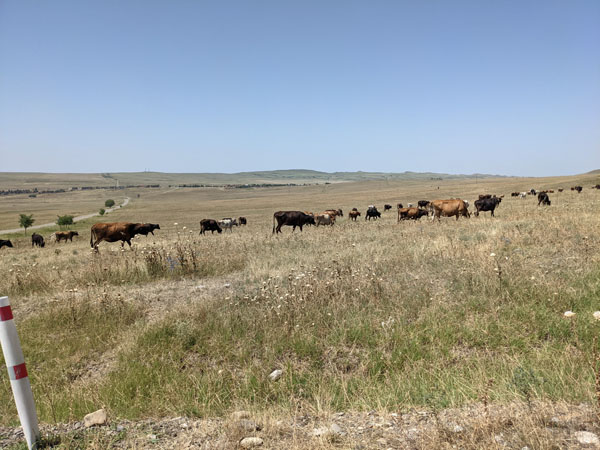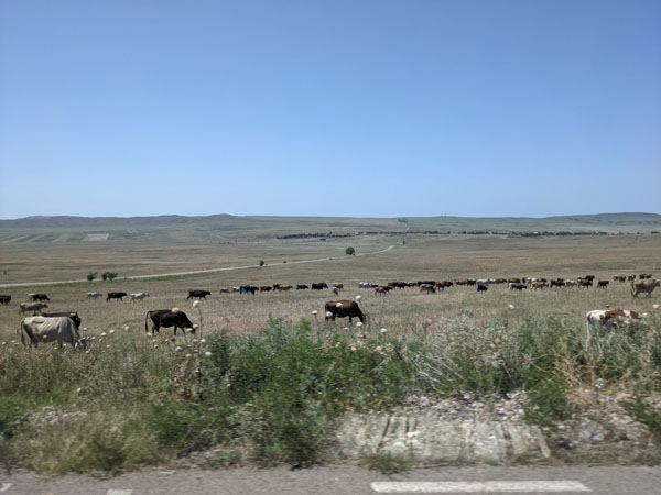 On arrive sur le site aux environs de 14 heures, incluant un stop à l’aller, 2 h 30 sur place, un dîner à 17 heures à Udbano (une heure) et retour à Tbilissi aux environs de 19 h 30 – 20 heures. Il y a environ une demi-heure à une heure de Gardabani à Lavra, soit 25 km, mais la route ne permet pas de grandes vitesses… Depuis Gardabani, David Garedja se trouve derrière les collines à l’est.