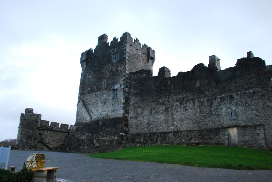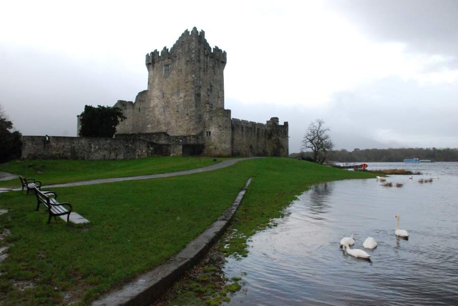 À peine 9 heures et déjà sur la route. Pas de temps à perdre. Je n’ai pas besoin d’aller loin. Ross Castle, un superbe château médiéval posé au bord du grand lac de Killarney, se trouve à deux pas de là. Un gros donjon du XVIe siècle se dresse au bord du lough Leane.