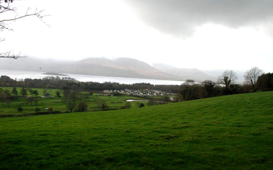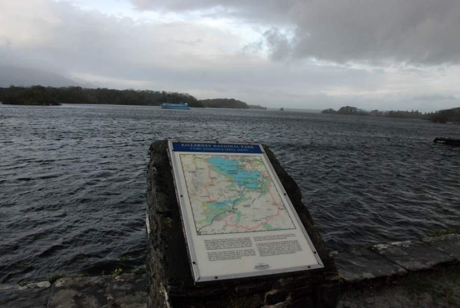 Après Ross castle, direction Killargin pour une halte aux Heigts of Aghadoe d’où l’on peut voir l’ensemble du parc national de Killarney et sur le Lough Leane. Quel dommage que le ciel soit si gris… Depuis ce promontoire, on peut voir les Mangerton Mountains, la Torc Hille, le Ross Castle, sans oublier les îles au milieu du lac, et à droite, le Carrantuohill, le sommet le plus haut de l’Irlande (1.040 m).