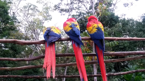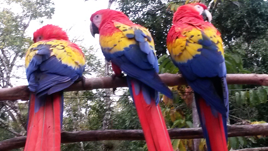 Chez les Mayas, ces perroquets sont des oiseaux sacrés qu’on retrouve stylisés sur pas mal de stèles de Copán.