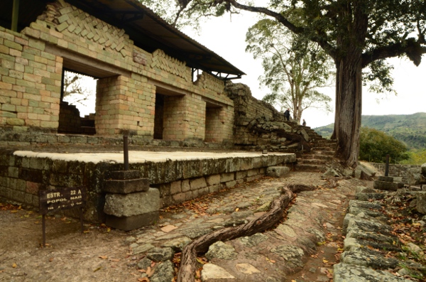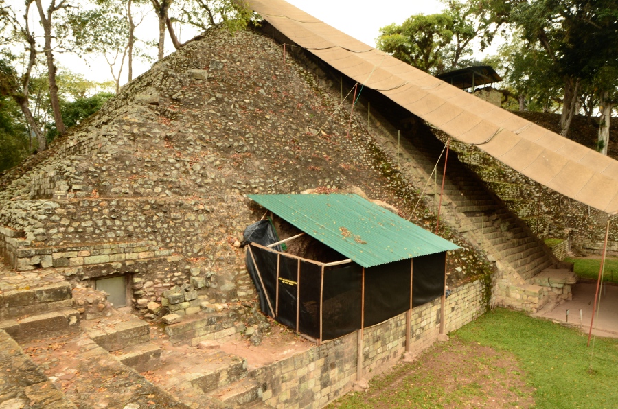 C’est autour de cette place que s’organisait la vie des élites de la cité maya. Pourquoi ici, parce que très probablement c’est ici que la cité a pris son essor. Dans les deux tunnels creusés sous la place, on trouve les vestiges les plus anciens de la cité, temples fondés par les premiers rois mayas. D’une certaine façon, la place sacralisait la mémoire des anciens, et donc la fondation du royaume de Copán.