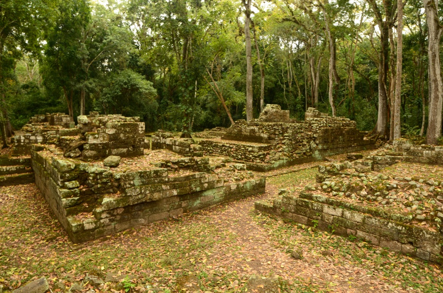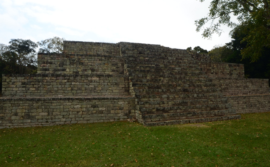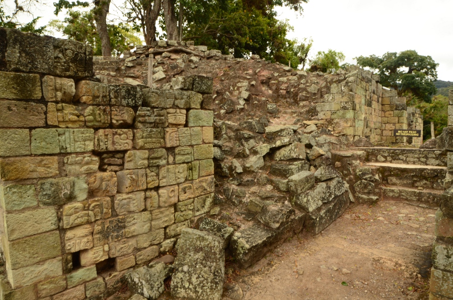 En longeant le sommet des gradins de la place en direction du sud, on débouche directement sur les restes du templo 18 dont il ne reste que peu de chose, sauf quelques pans de mur et quelques hiéroglyphes. De là, jolie vue sur la forêt tropicale. Bâtie à proximité de la rivière, la cité a dû faire face à de nombreuses crues. Ce sont elles qui ont emporté une grande partie des vestiges de la cité.