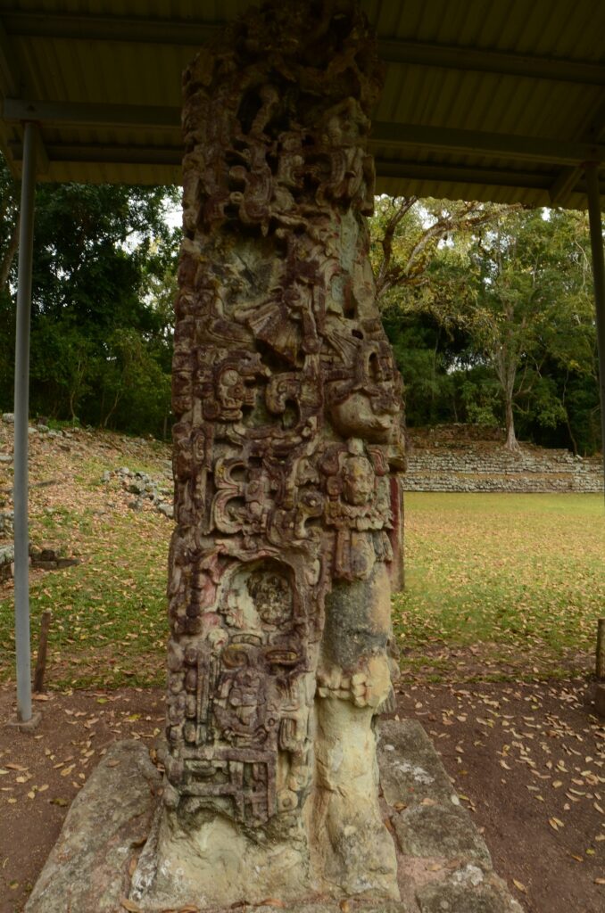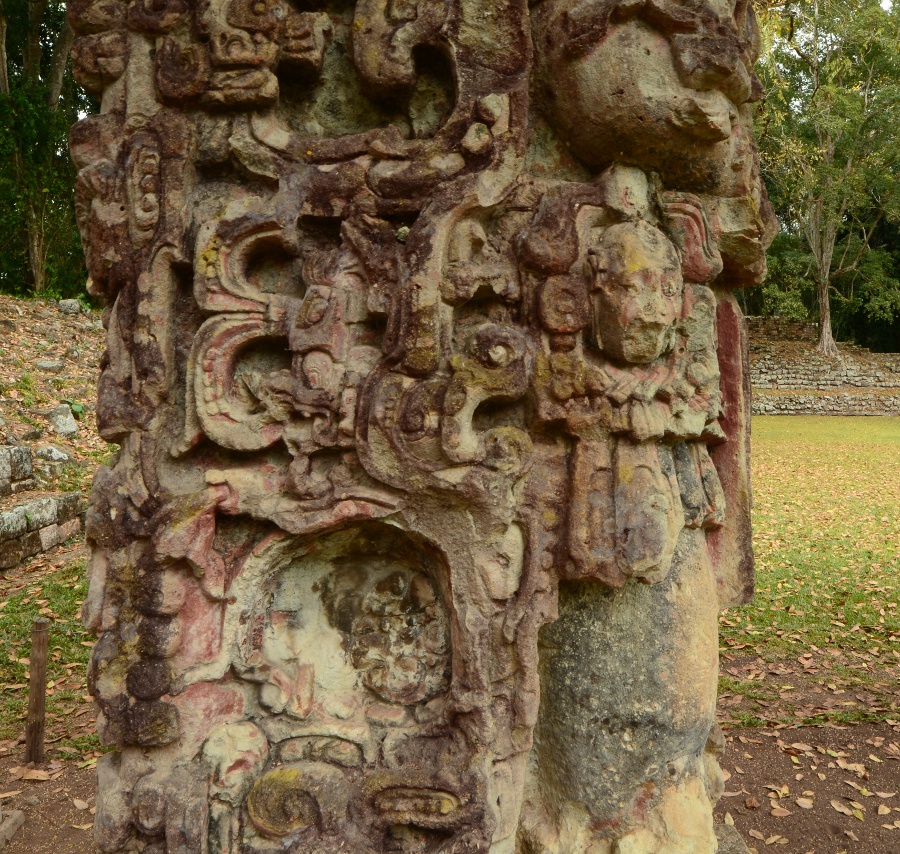 De tous les sites mayas, Copán est celui où les stèles sont les plus nombreuses et les mieux conservées. Stèles et sculptures, tant leur état de conservation est exceptionnel. Sur celles-ci, les Mayas compilaient leurs observations astronomiques, mais aussi le déroulement du temps, leur calendrier et les dates.