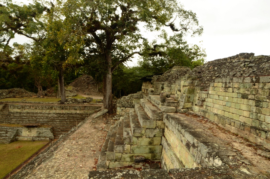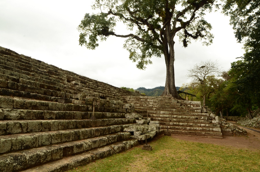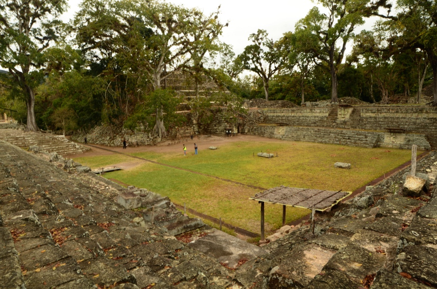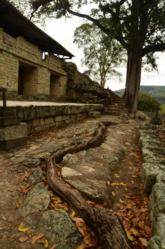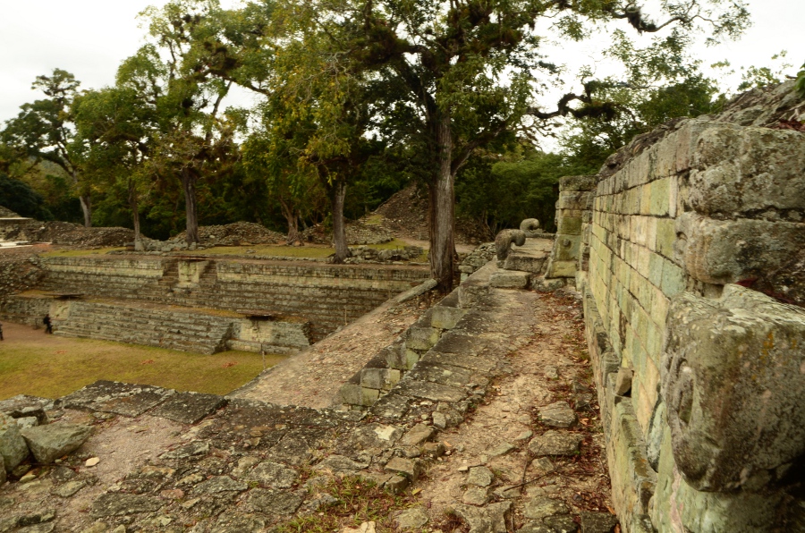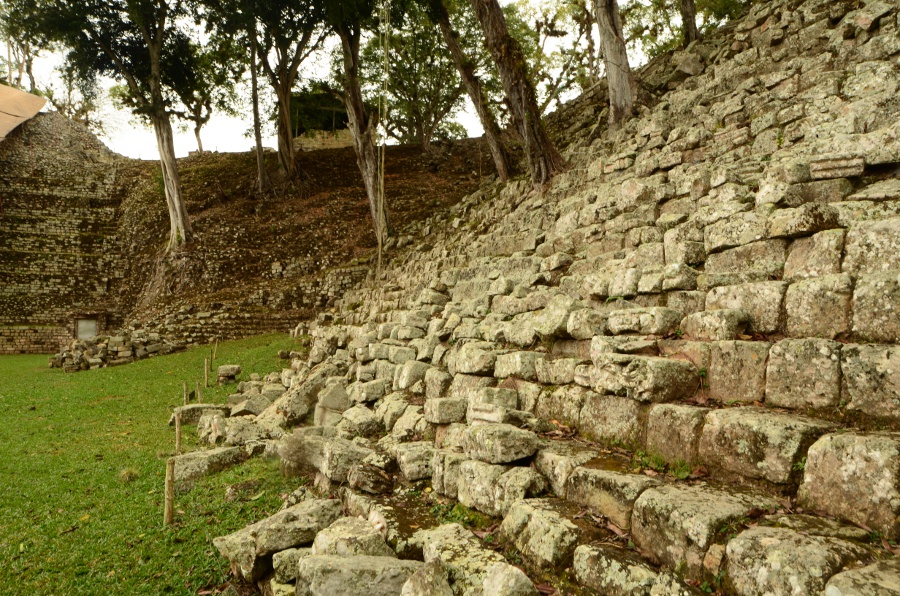 Aujourd’hui, la végétation pousse au milieu des ruines, les arbres enracinés dispersés au milieu des pierres donnent un cachet incroyable à ce lieu. Malgré tout, avec un peu d’imagination et en se laissant imprégner par la poésie de ces lieux, on imagine sans mal la grandeur de Copán au temps de la splendeur maya.