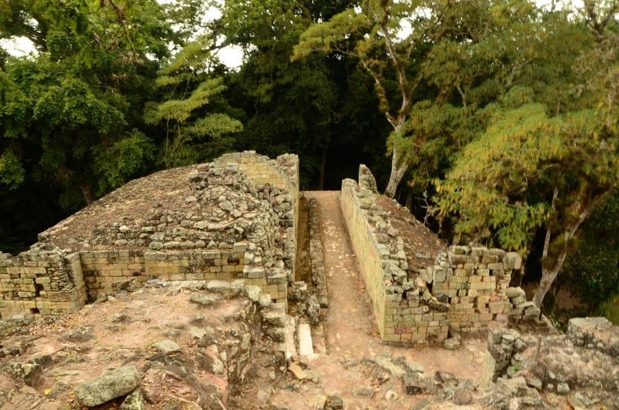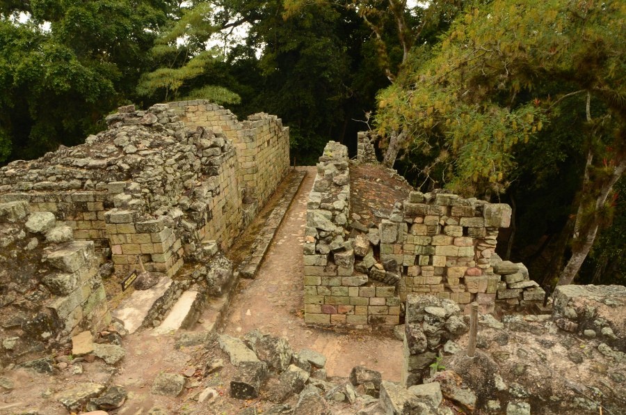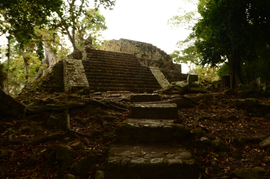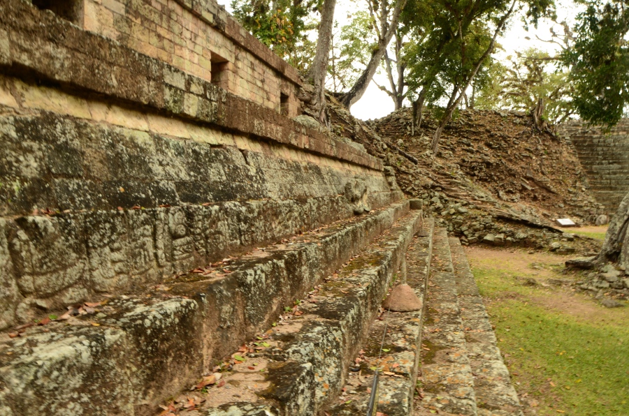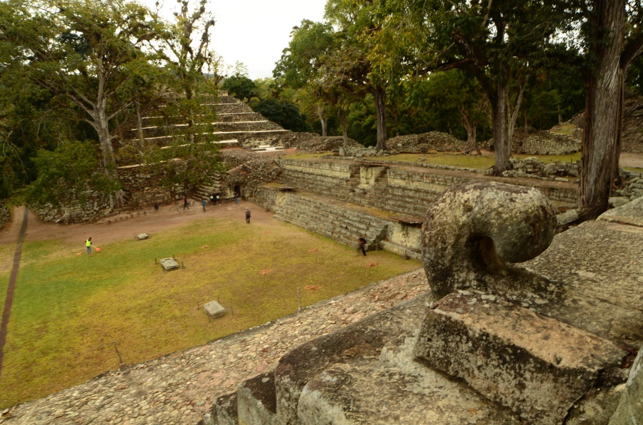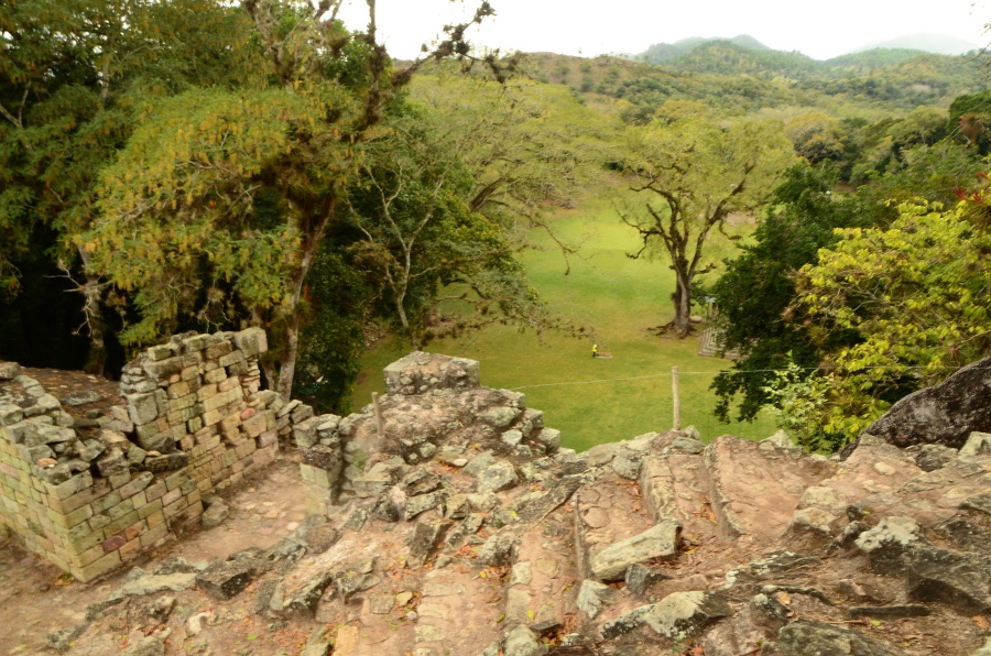 Aujourd’hui, la végétation pousse au milieu des ruines, les arbres enracinés dispersés au milieu des pierres donnent un cachet incroyable à ce lieu. Malgré tout, avec un peu d’imagination et en se laissant imprégner par la poésie de ces lieux, on imagine sans mal la grandeur de Copán au temps de la splendeur maya.