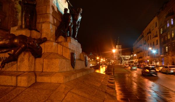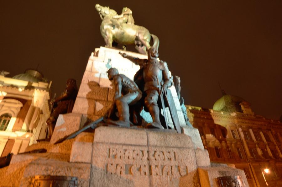 De l’autre côté du grand boulevard, en revenant vers la gare centrale, se dresse la grande statue du Souvenir de la place Matejki.