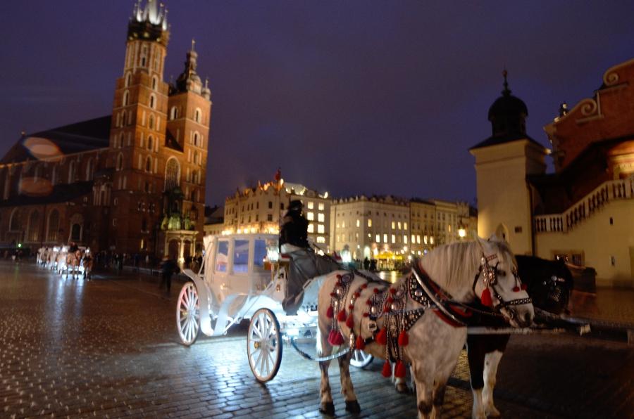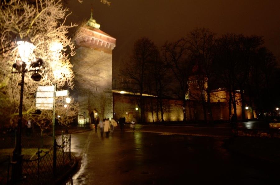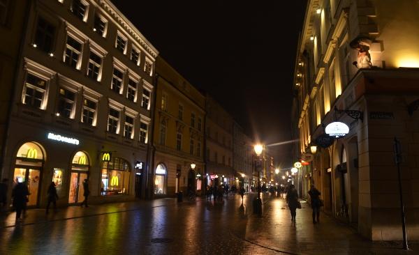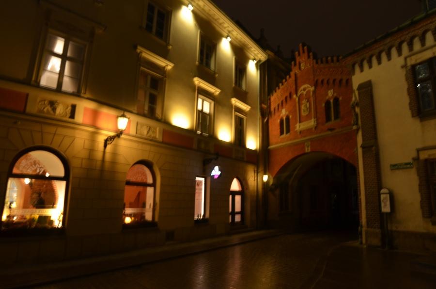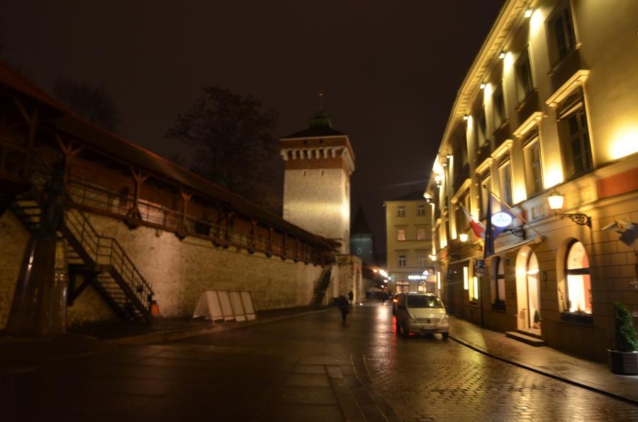 L’heure bleue est passée et cédé sa place à la nuit. Les ténèbres tombent sur la vieille ville de Cracovie et m’accompagnent le long de la rue Florianska, la rue la plus populaire de la ville qui regroupe un nombre incalculable de vieilles maisons médiévales.