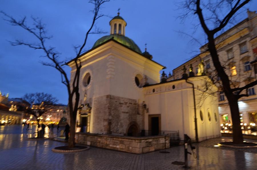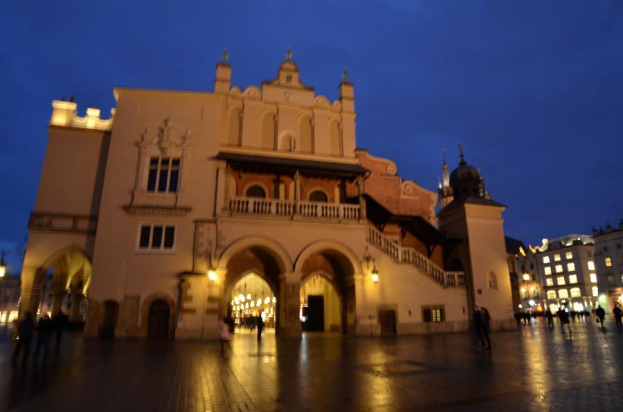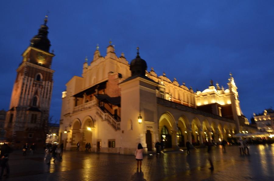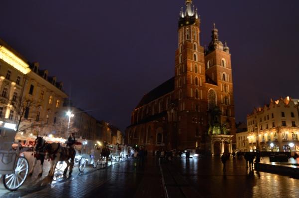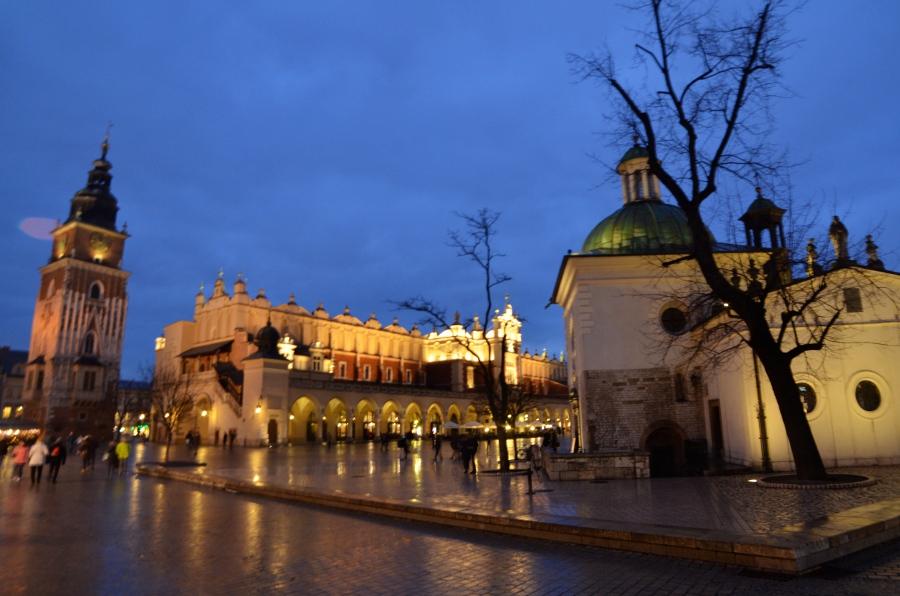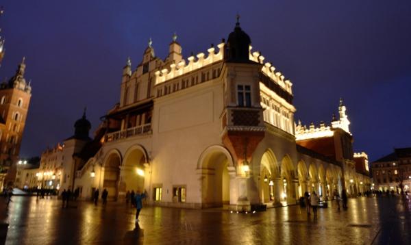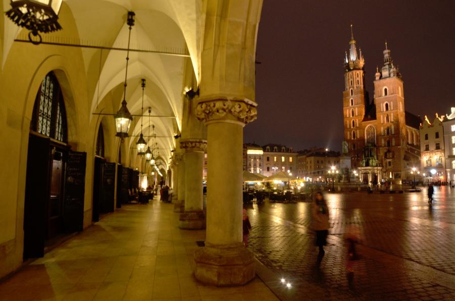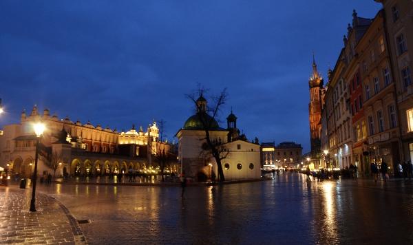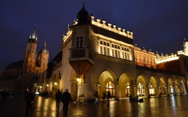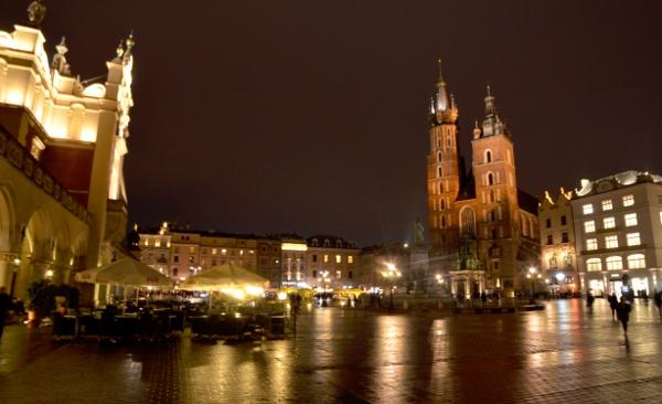 Jeudi 9 mars. La nuit tombe. Je me dirige tranquillement vers Rynek Glowny, la place centrale de la vieille ville de Cracovie. Avec la nuit, tous les monuments sont désormais fermés. Pas de visite donc. Je me contente donc de flâner autour de la place et de profiter du spectacle des lumières qui éclairent tous les bâtiments, les églises, la halle aux grains, les tours… Cracovie est vraiment une des plus belles villes d’Europe. Encore plus belle que Budapest à mon goût. Une véritable ville médiévale que même les Nazis n’ont pas osé détruire complètement comme ils l’ont fait pour Varsovie.