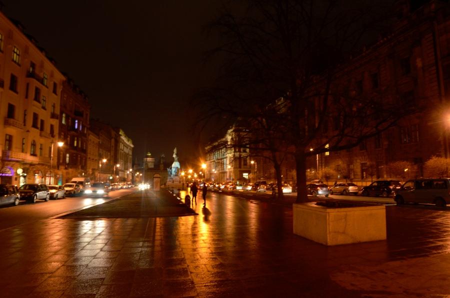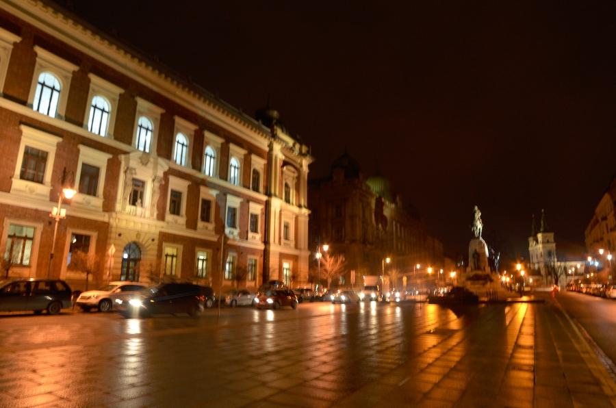 Retour sur Rynek Growny. Je profite de l’heure bleue pour shooter quelques photos de nuit. Pas évident sans trépied. J’enrage. Quelques-unes seront floues. Pas de stabilisateur sur le 14 mm monté sur mon D7000. Mise au point compliquée… La guigne.