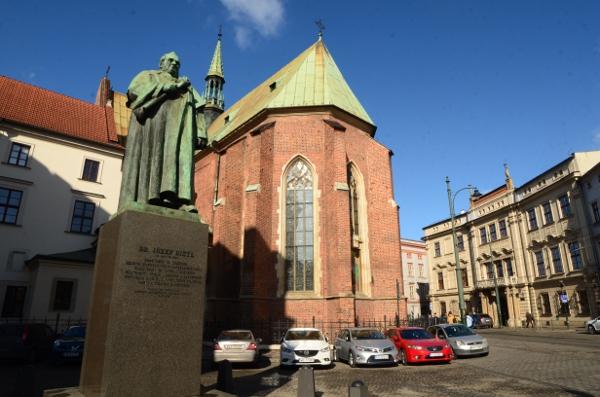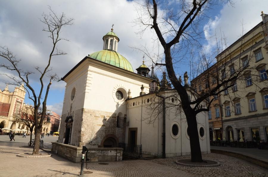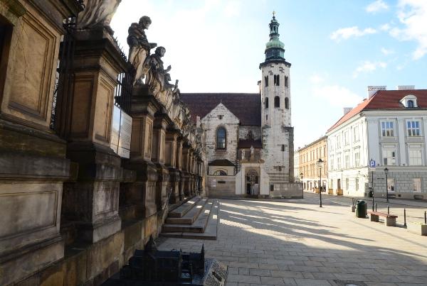 Au bout de la rue Dominikarski se dressent la façade de la basilique de la Sainte-Trinité et le couvent des Dominicains.