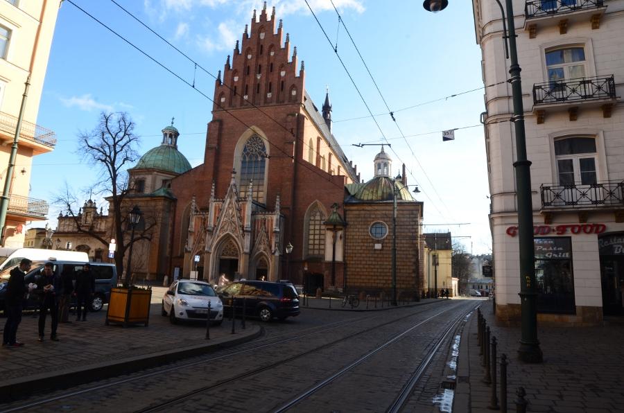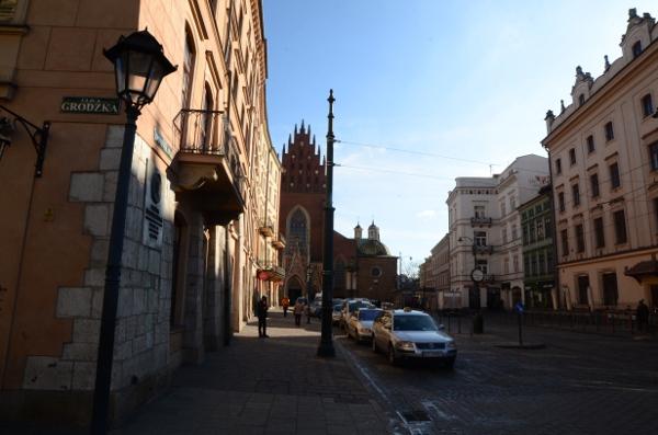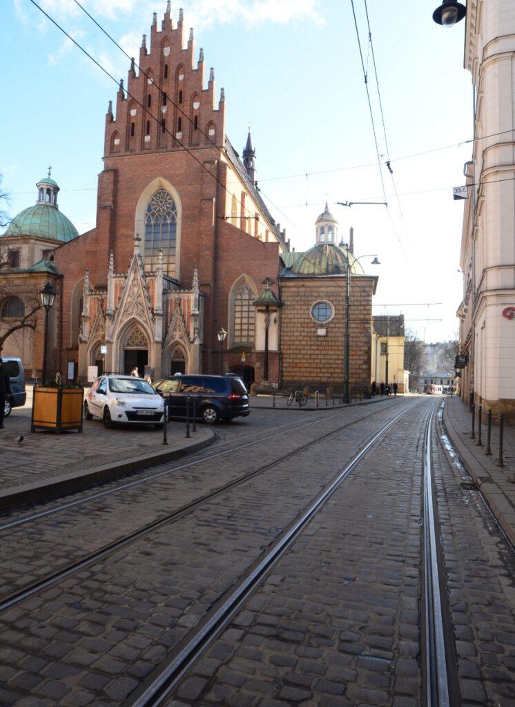 J’oblique à droite, je reprends la rue Grodzka pour suivre la voie royale et je passe devant les grilles de l’église Saint-Pierre Saint-Paul. J’y reviendrai au retour.
