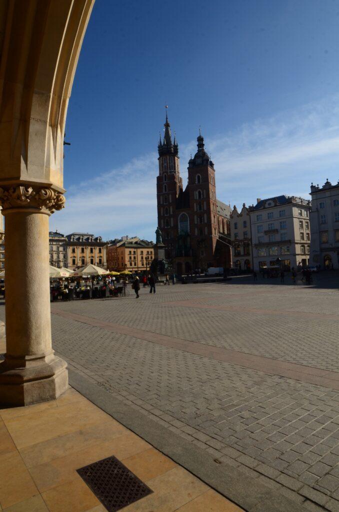 À mon retour sur la place, après mon petit tour sur la colline de Wawel, je ne peux m’empêcher de repasser une dernière fois admirer la belle place du Rynek. Et je ne suis pas le seul. Deux amoureux enlacés ne se lassent pas de ce moment. Je suis chanceux ce matin.