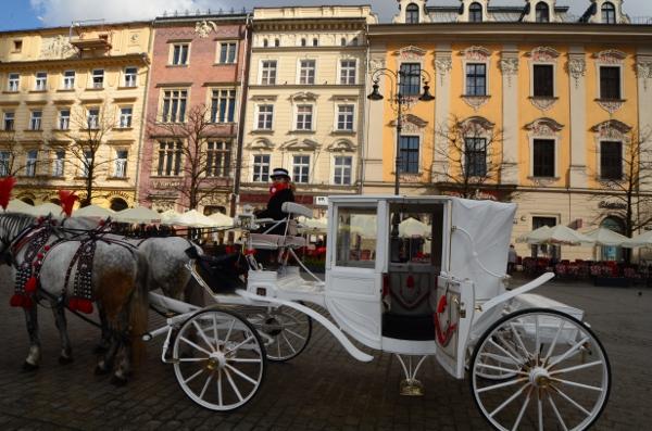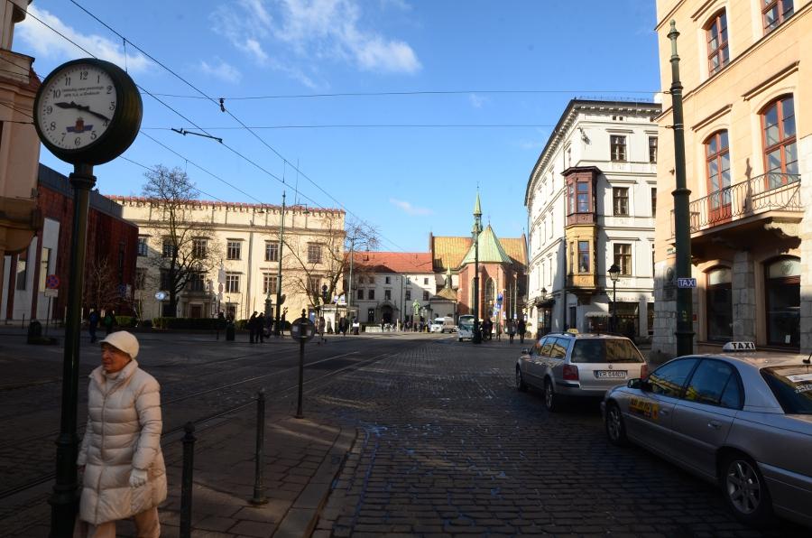 Samedi 11 mars. Voici venu mon dernier jour passé à Cracovie. Il fait un temps splendide aujourd’hui. Pas un nuage à l’horizon ! J’ai toute une matinée pour retourner dans la vieille ville et profiter du beau temps pour faire quelques clichés ensoleillés de la belle ville de Cracovie. Pour ce parcours, j’emprunterai la Voie Royale : de la Place Matejki jusqu’au château de Wawel.