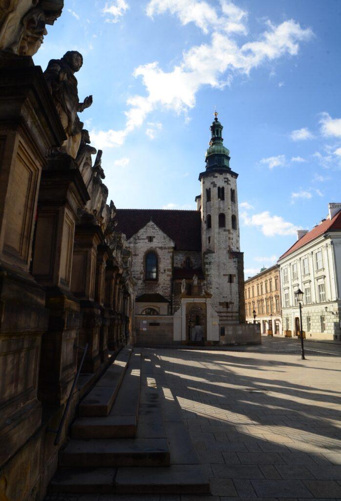 Passé le Rynek, je reprends la rue Grodzka pour reprendre la Voie royale. Sous le soleil matinal, l’église Saint-Gilles prend une tout autre dimension.