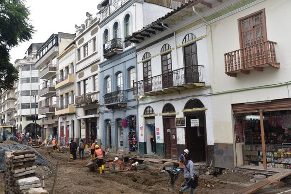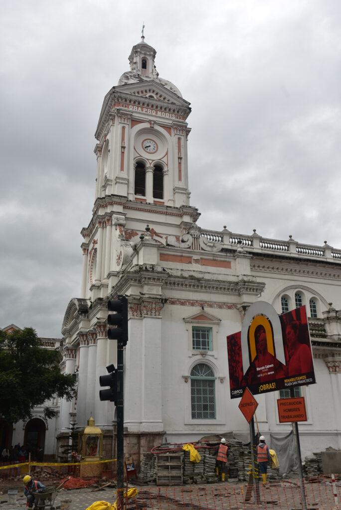 Partout dans la ville, on peut remarquer des travaux gigantesques… Il s’agit de la construction d’un tramway moderne, le premier de l’Équateur, qui viendra désengorger la ville et son quartier historique du flot des voitures.