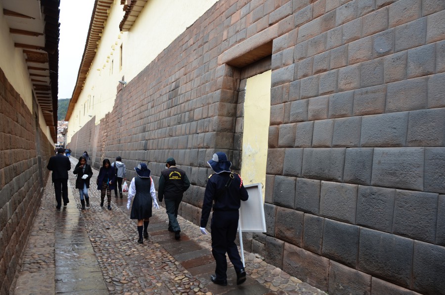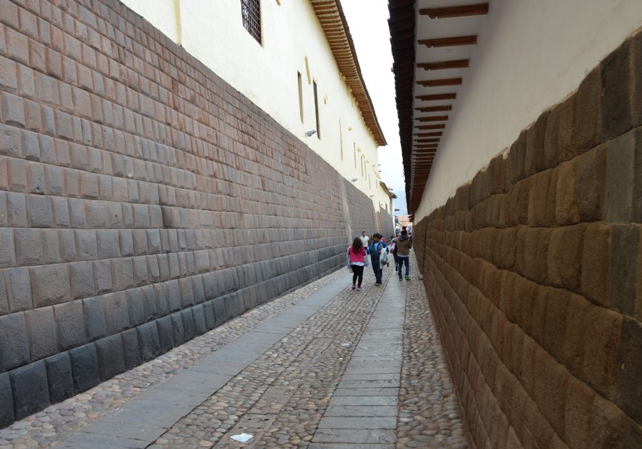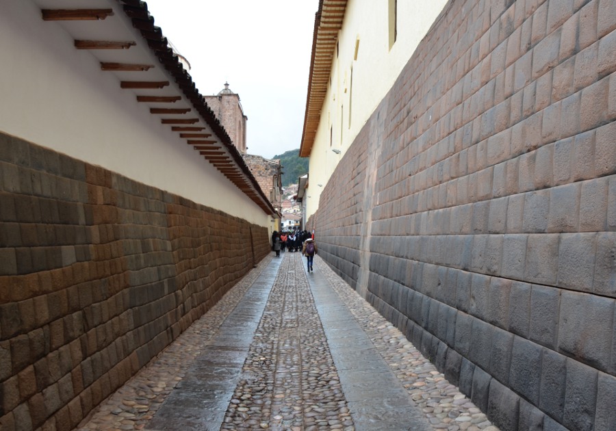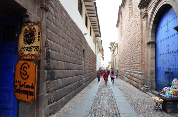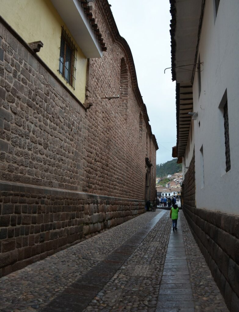 Cette ruelle étroite est bordée sur toute sa longueur de fondations incas en parfait état de conservation. La hauteur des murs laisse entrevoir les constructions grandioses qui devaient être là quand les conquistadors espagnols ont pénétré pour la première fois dans la capitale inca… Quel spectacle ce devait être !