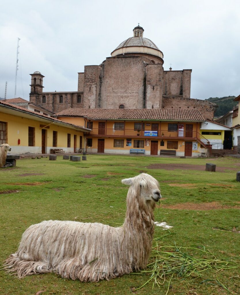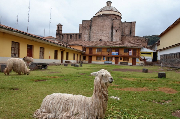 Au centre de la rue, une petite porte mène à un vaste domaine. Sans doute un ancien palais inca. Des lamas broutent tranquillement sur la pelouse.
