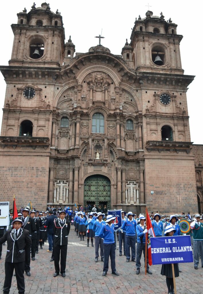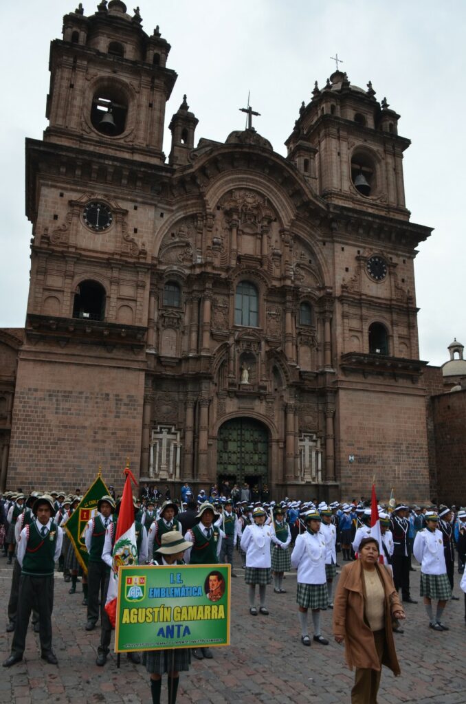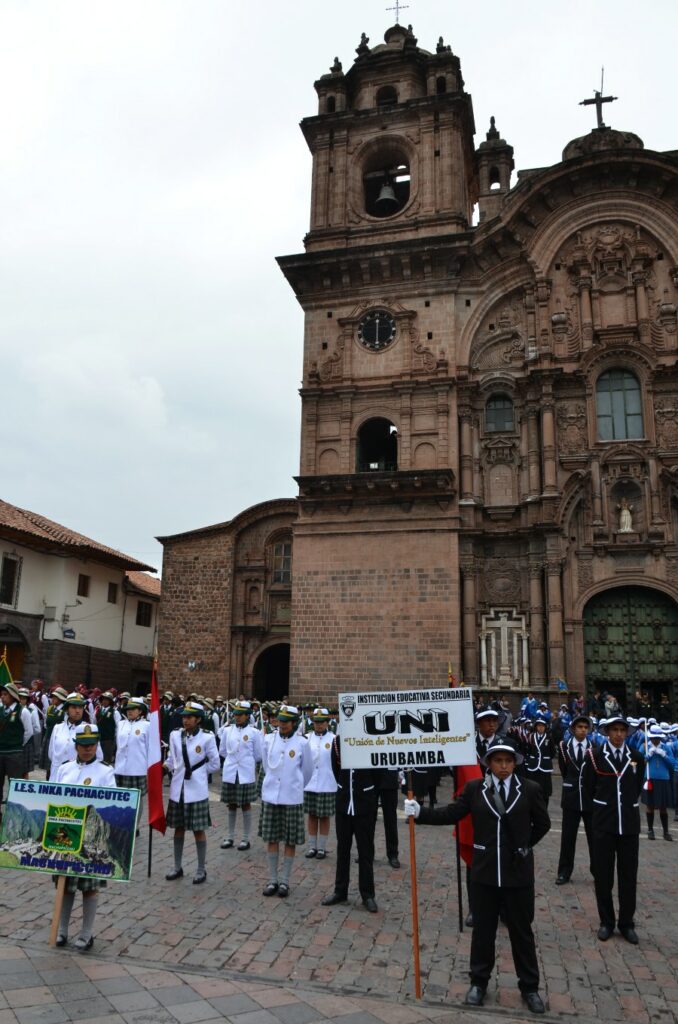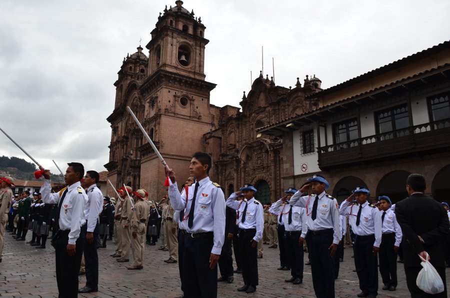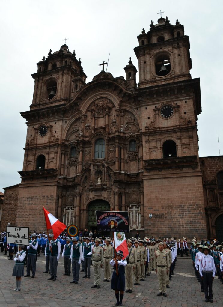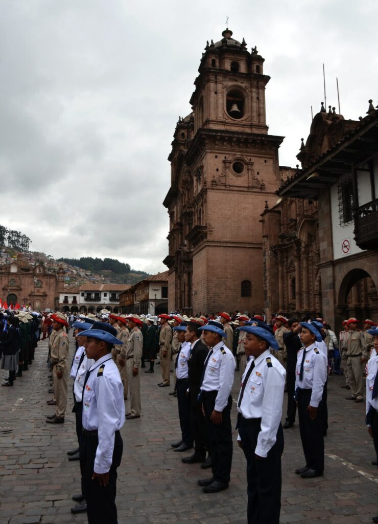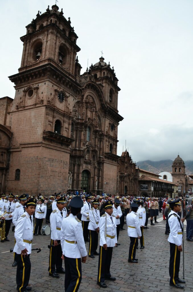 Ok, après la Merced, je file tout droit vers la Plaza de Armas. Là, une surprise m’attend. Nous ne sommes pas dimanche, mais j’ai quand même droit à un des nombreux « défilés civiques » de la ville. Toutes les écoles de la ville sont là, rangées en ligne, et les enfants vêtus de leurs plus beaux uniformes. Les fanfares et les harmonies sont au diapason. Un truc de dingue !