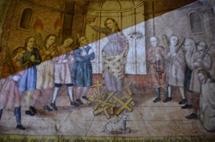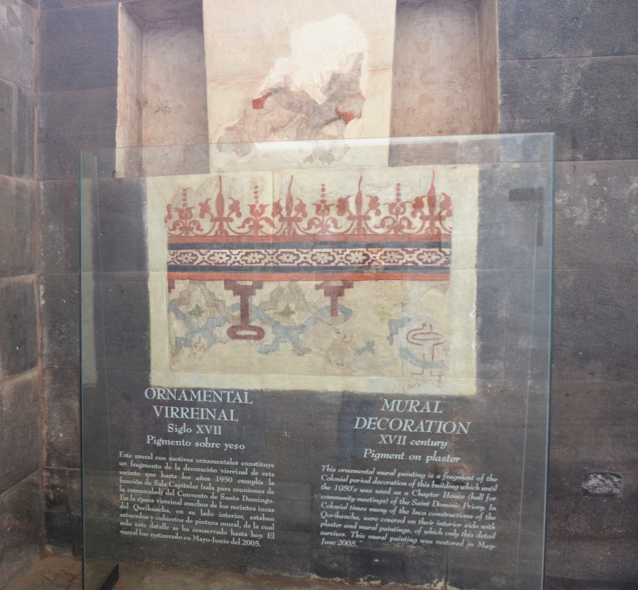 Un peu plus loin, il ne faut surtout pas manquer le seul vestige peint de l’ancien temple. Motifs incas aux tons rouges, ocre et brun. Émouvant.