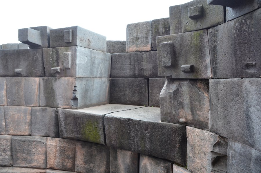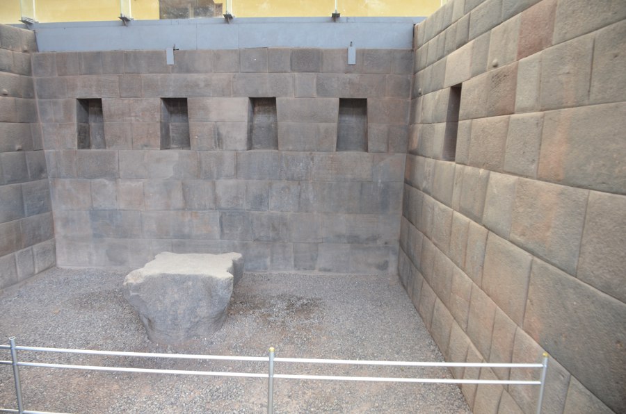 Tous ses murs étaient alors recouverts d’or, y compris le trône des empereurs défunts, les corniches, les autels, les plafonds, les statues et le disque solaire du sanctuaire. Un vrai trésor que les Espagnols se sont empressés de piller, de fondre et de ramener vers l’Espagne. Les pierres les plus étranges sont les fameuses pierres d’angle, biscornues, et semble-t-il utilisées pour solidifier la structure.