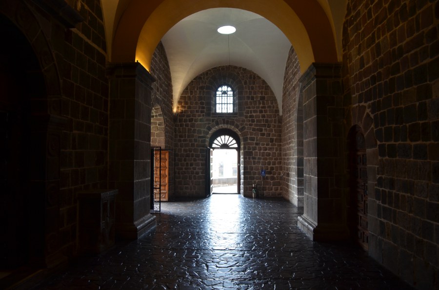 Quel étrange mélange en effet que ce temple du Soleil enserré dans l’actuel couvent, curieux mélange de murs incas cernant le grand cloître de l’édifice religieux et de bâtiments de l’époque hispanique et coloniale.