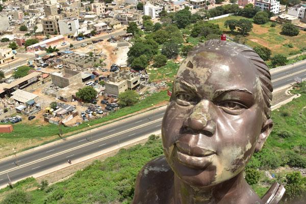 Depuis le sommet du monument (attente interminable avant de pouvoir y accéder !), on a une vue panoramique sur le béton des tours de Dakar.