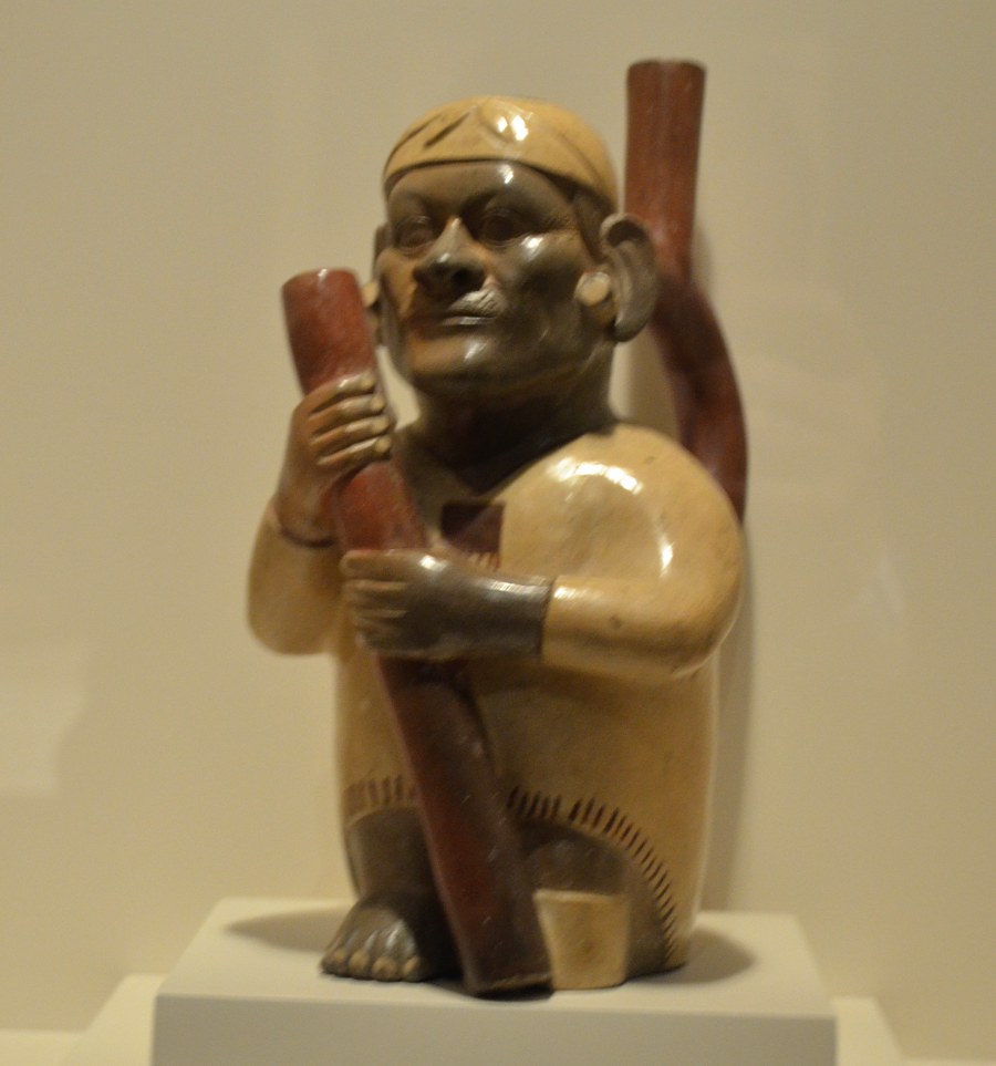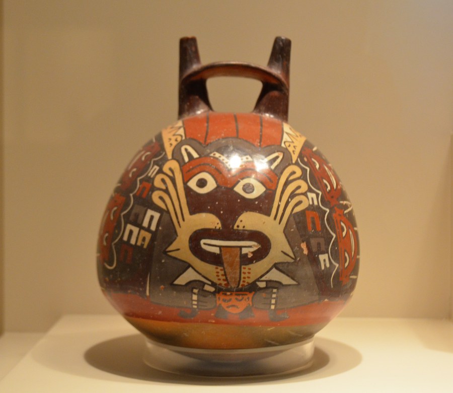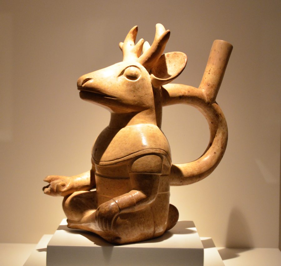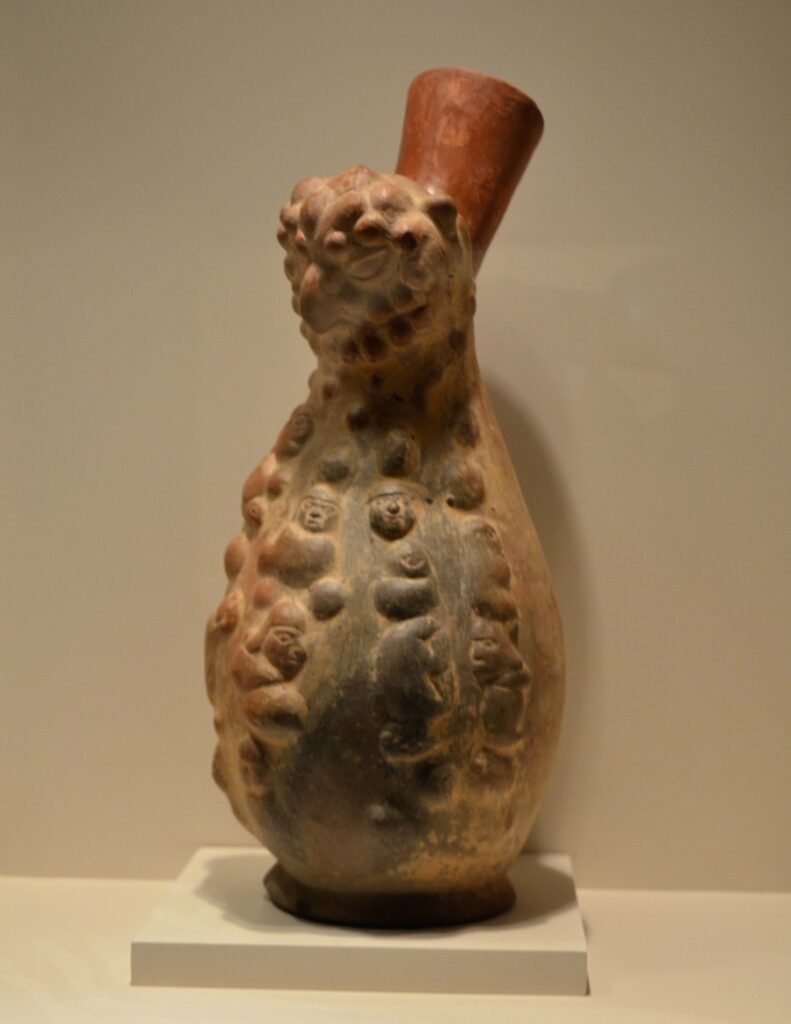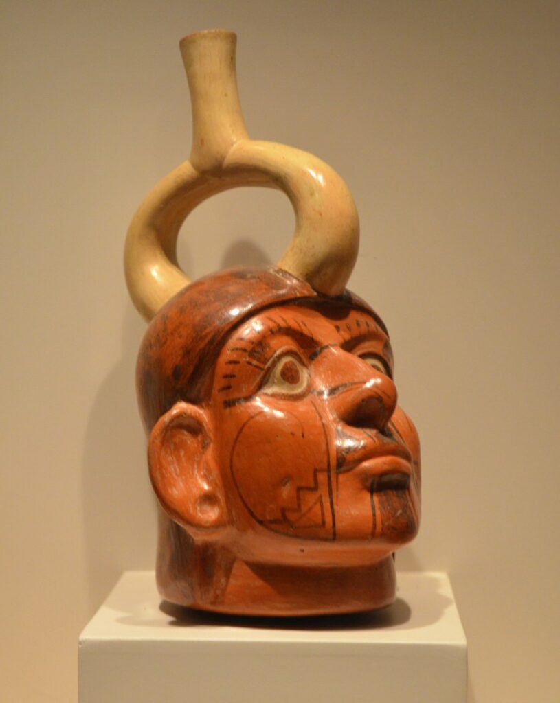 Parures en or, ornements nasaux en argent, bijoux, coquillages, vaisselles, masques cérémoniaux, bâtons sculptés mochicas, sceptres et idoles chimus en bois, céramiques, vases, colliers… Tout l’art des différentes civilisations qui ont peuplé cette partie de l’Amérique du Sud est représenté. Moches, Chimus, Chavin… Toutes sont là, avec une petite préférence marquée pour moi pour les belles poteries et figurines moches.