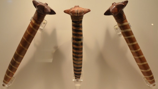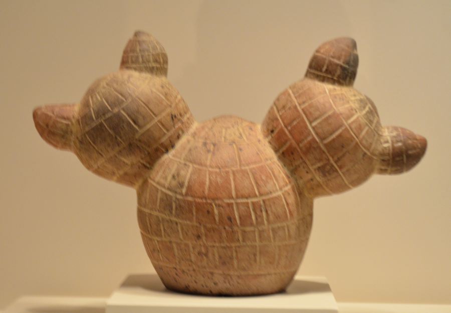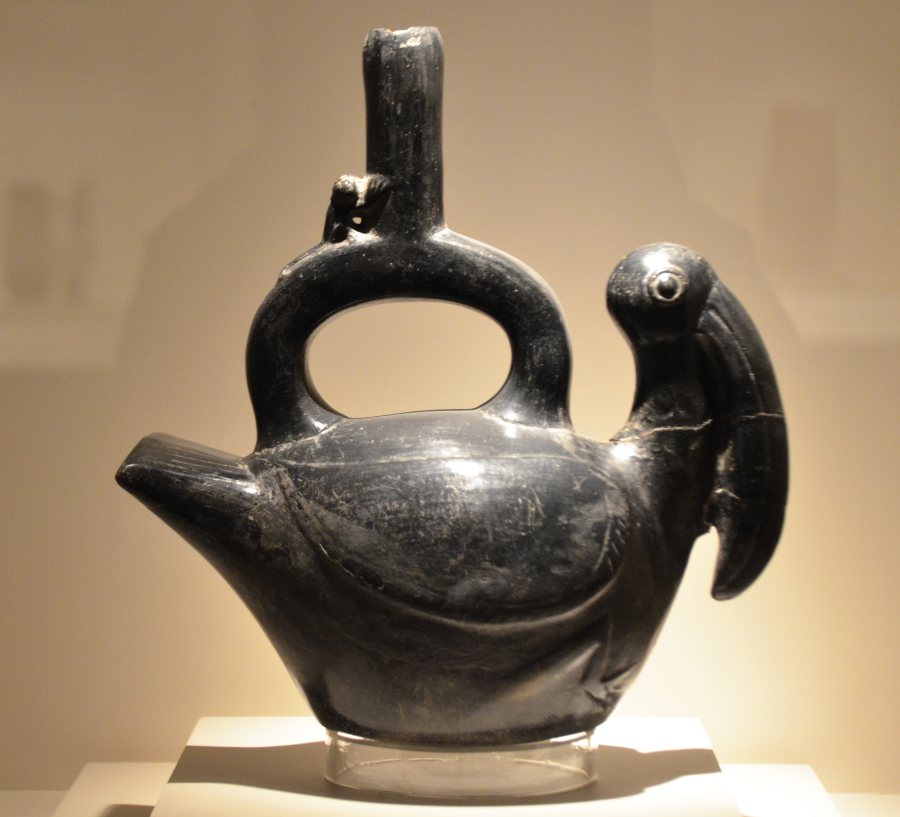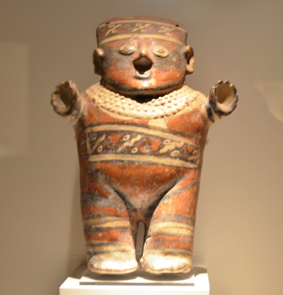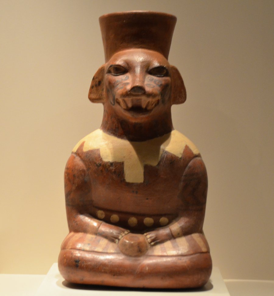 Parures en or, ornements nasaux en argent, bijoux, coquillages, vaisselles, masques cérémoniaux, bâtons sculptés mochicas, sceptres et idoles chimus en bois, céramiques, vases, colliers… Tout l’art des différentes civilisations qui ont peuplé cette partie de l’Amérique du Sud est représenté. Moches, Chimus, Chavin… Toutes sont là, avec une petite préférence marquée pour moi pour les belles poteries et figurines moches.