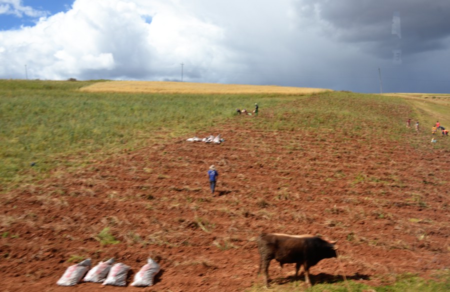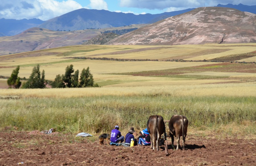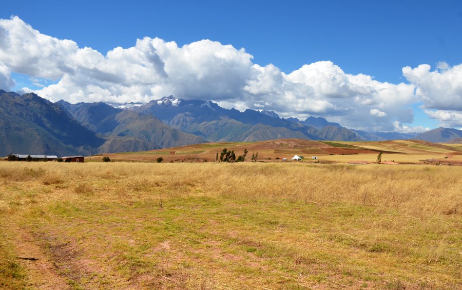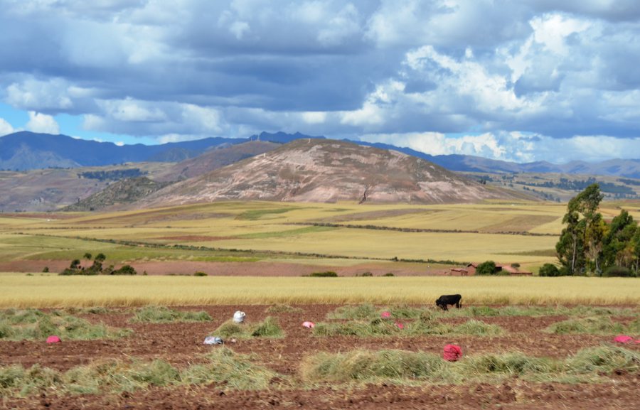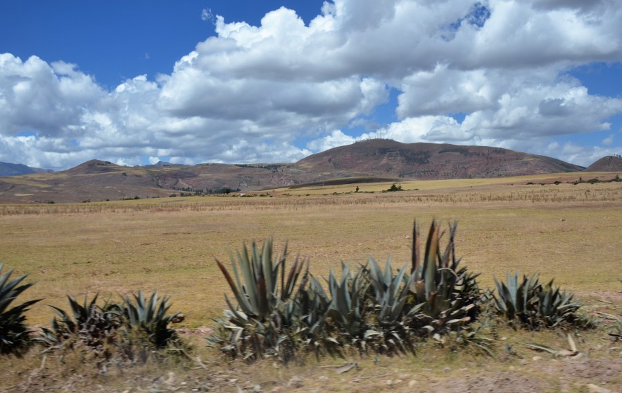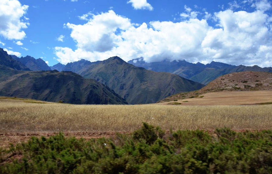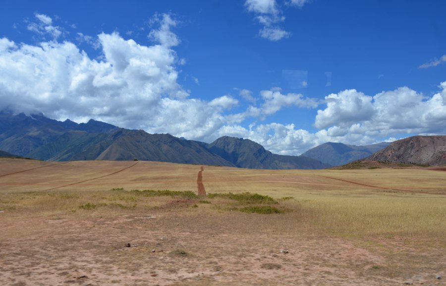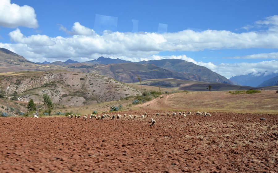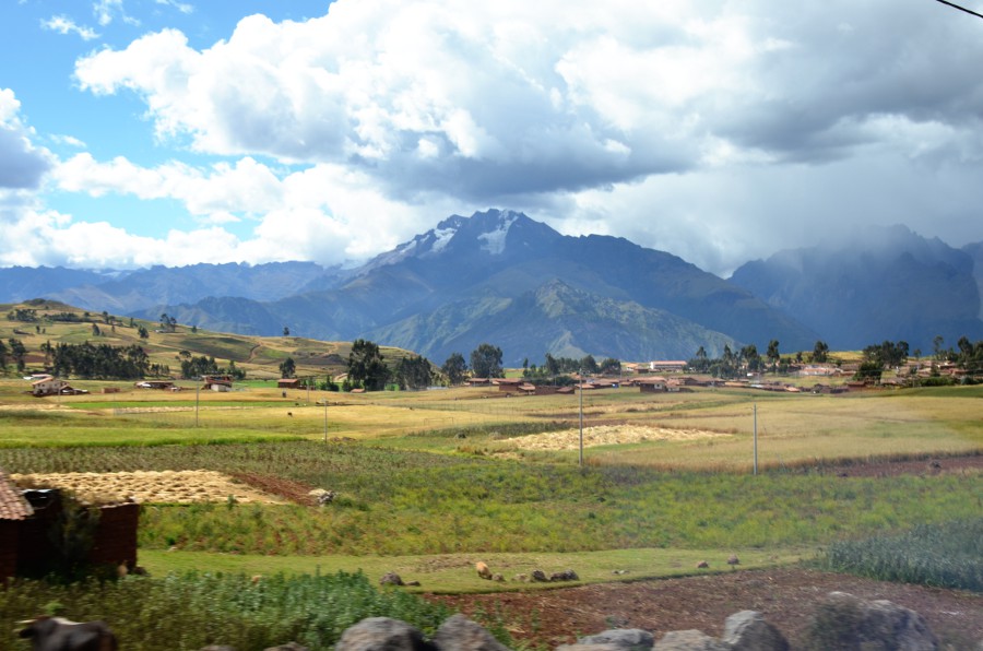 Paysages sublimes magnifiés par une lumière exceptionnelle. Le ciel se couvre déversant sur toute la vallée des teintes orangées. Le haut plateau andin déroule sa longue steppe à travers un écrin de montagnes aux cimes enneigées. Des paysans travaillent dans les champs de maïs. D’autres accompagnent les bêtes sur les versants de collines. Les champs de quinoa redessinent la campagne. Des moutons paissent au milieu des friches et, au loin, un chemin de terre poursuit sa course jusqu’au pied des montagnes. C’est beau et c’est à couper le souffle.