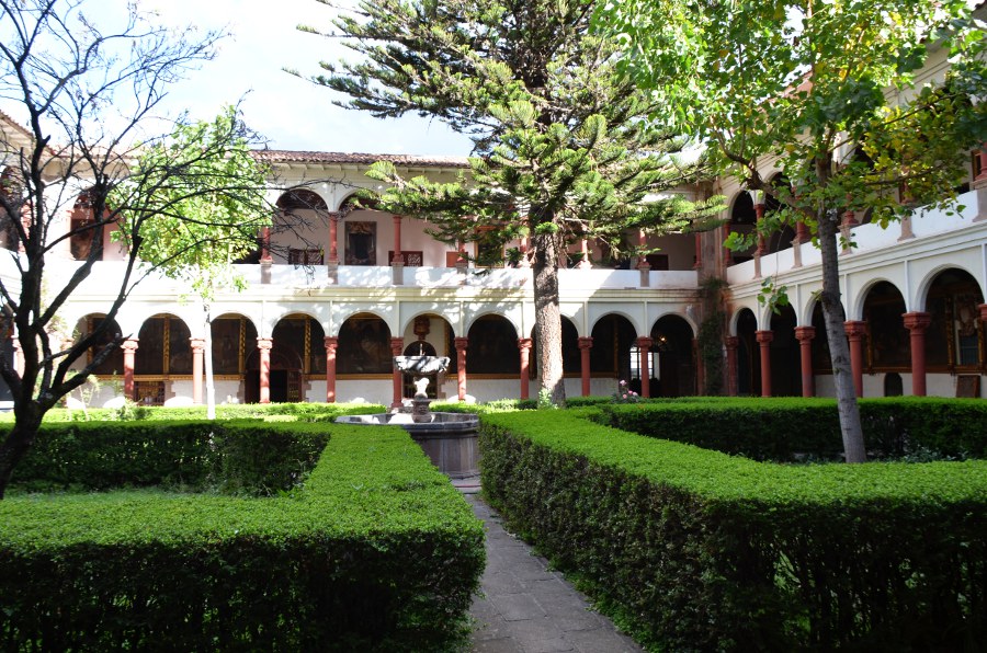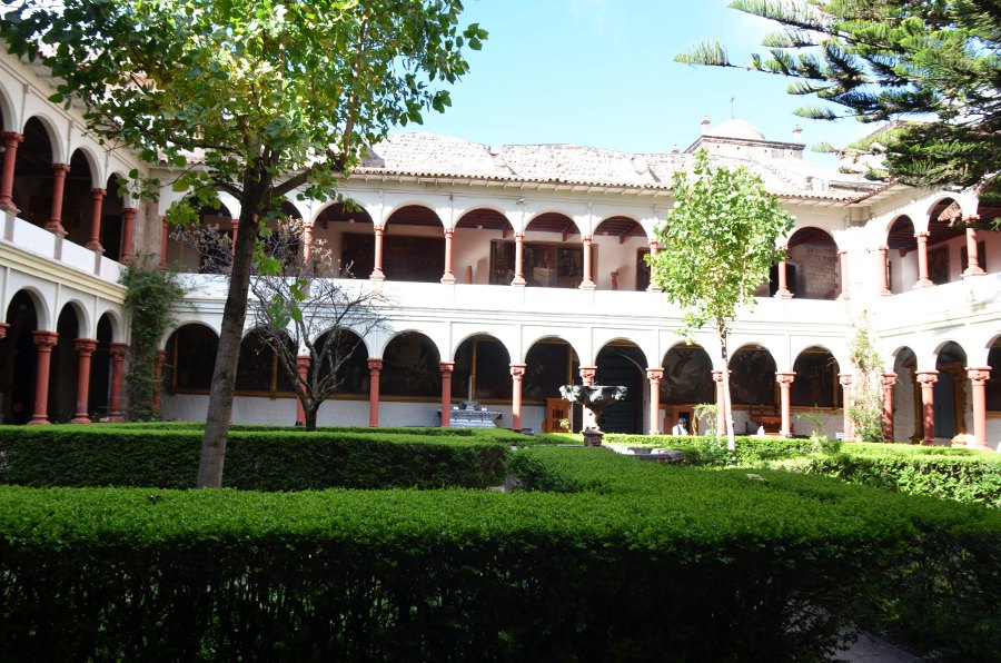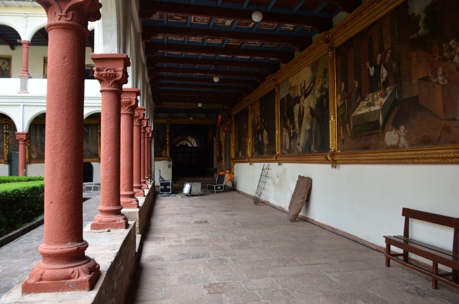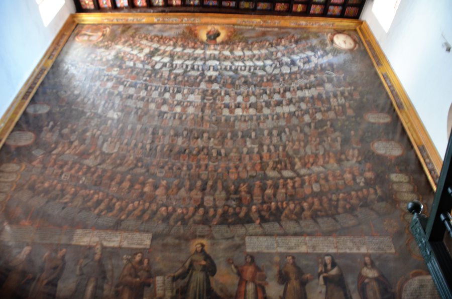 Il est un peu plus de 14 heures quand on revient enfin à Cuzco. Le temps s’est rafraîchi, mais qu’importe. Plaza San Francisco, tout le monde descend. Ça tombe bien, c’est ici que se dresse un des plus beaux monastères de Cuzco. Le couvent de San Francisco abrite un cloître Renaissance de toute beauté, avec deux niveaux d’arcades. Il est le plus ancien de la ville. Ses plafonds en stuc sont magnifiques. Entre les deux étages, au sommet de l’escalier, il faut absolument se retourner pour admirer l’extraordinaire arbre généalogique de l’ordre Franciscain avec ses 683 personnages. Le plus grand d’Amérique latine.