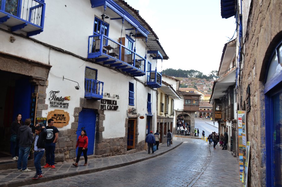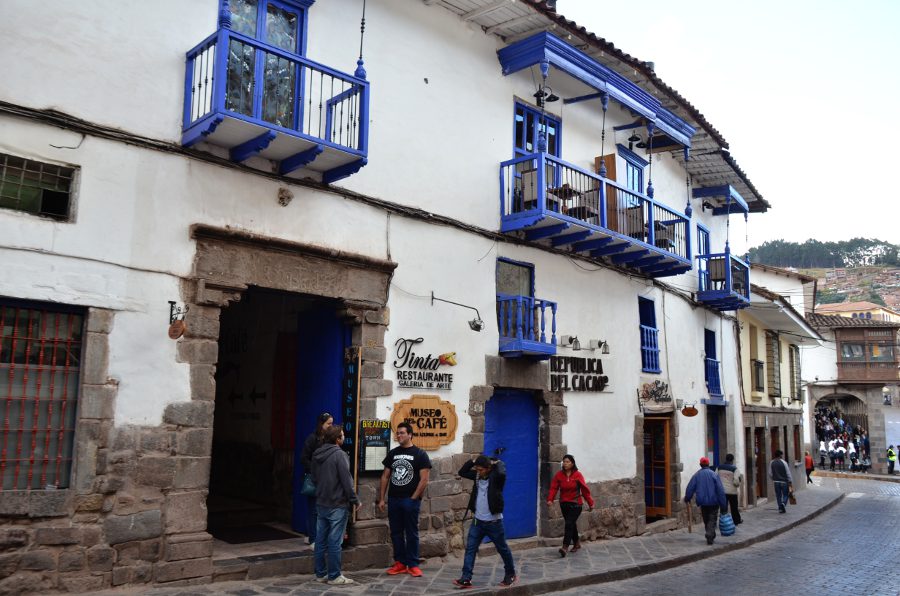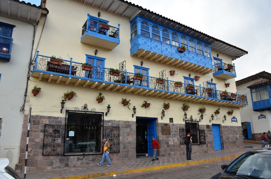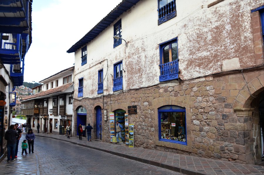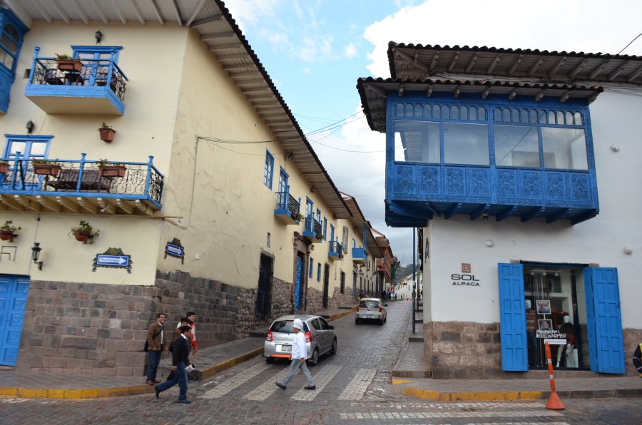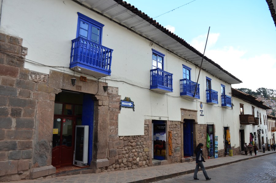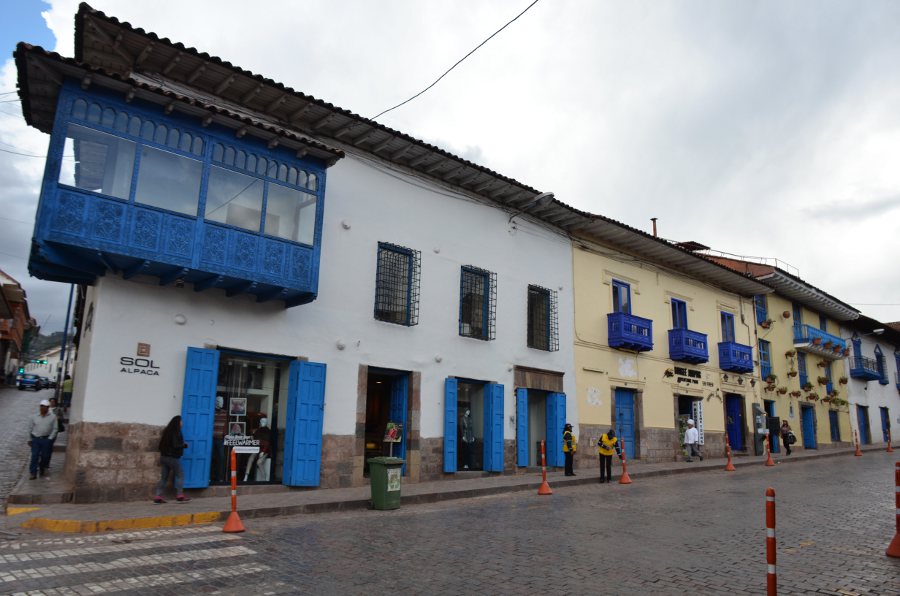 Les rues qui séparent la Plaza San Francisco et la Plaza de Armas sont couvertes de solides bâtisses de pierre aux murs épais et aux imposantes fondations. Certaines d’entre elles arborent encore fièrement leurs murs incas. Les boiseries bleues tranchent avec la blancheur des murs peints à la chaux. Des balcons de bois encadrent les fenêtres. Certains d’entre eux sont délicatement sculptés.