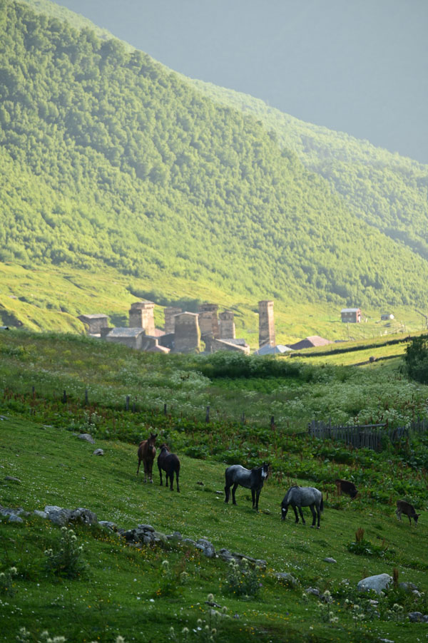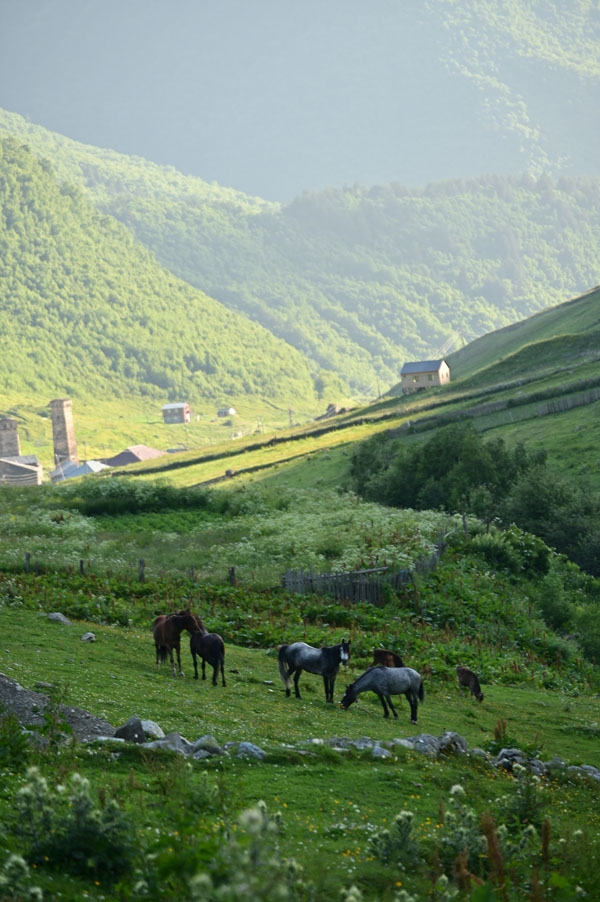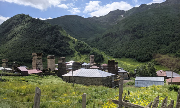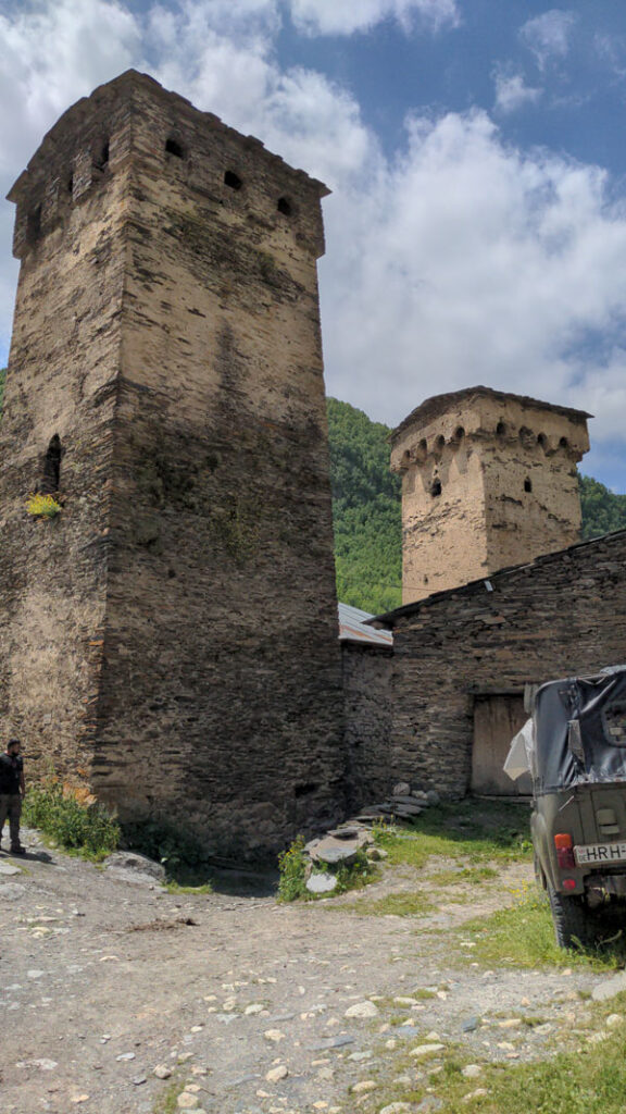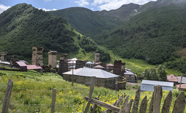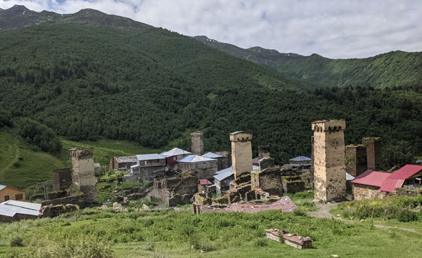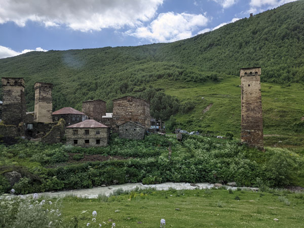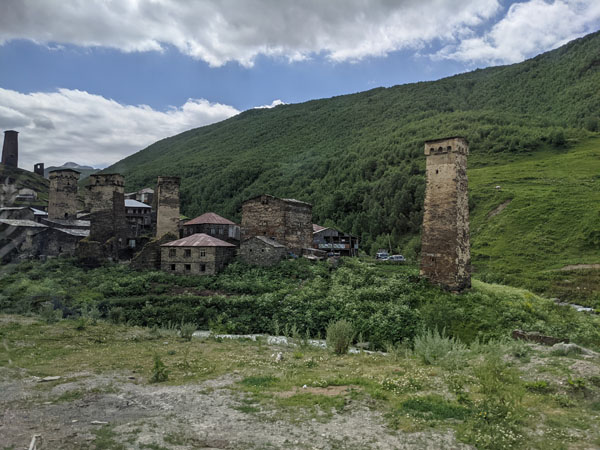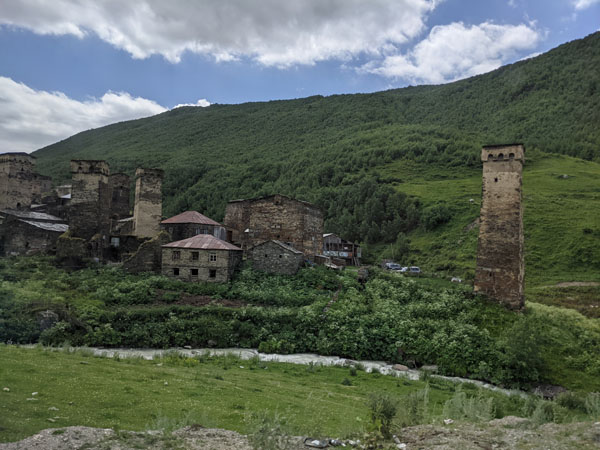 Lundi 11 juillet. Ce matin, nous déménageons temporairement, le temps d’une nuit et d’une journée, à Ouchgouli, le plus beau village de la Svanétie, connu pour se centaines de tours défensives entièrement préservées.