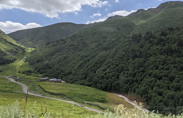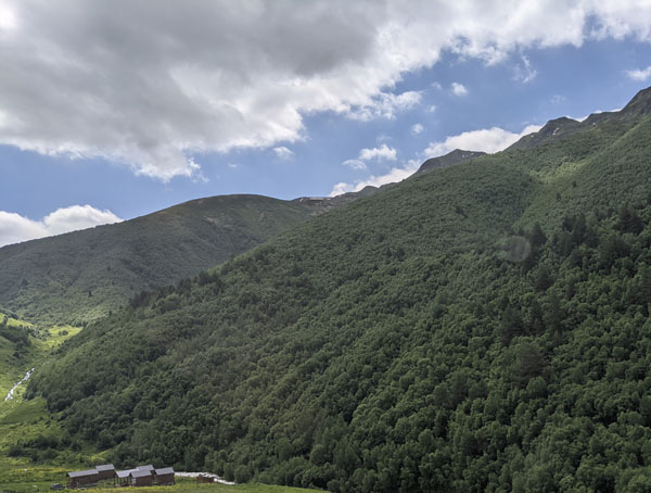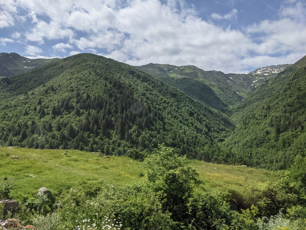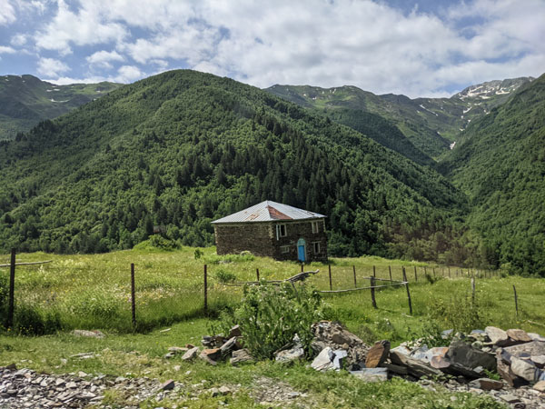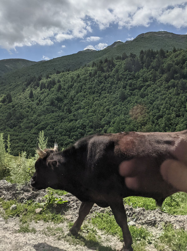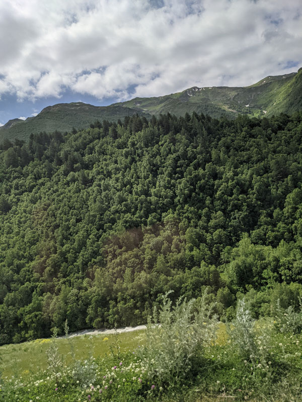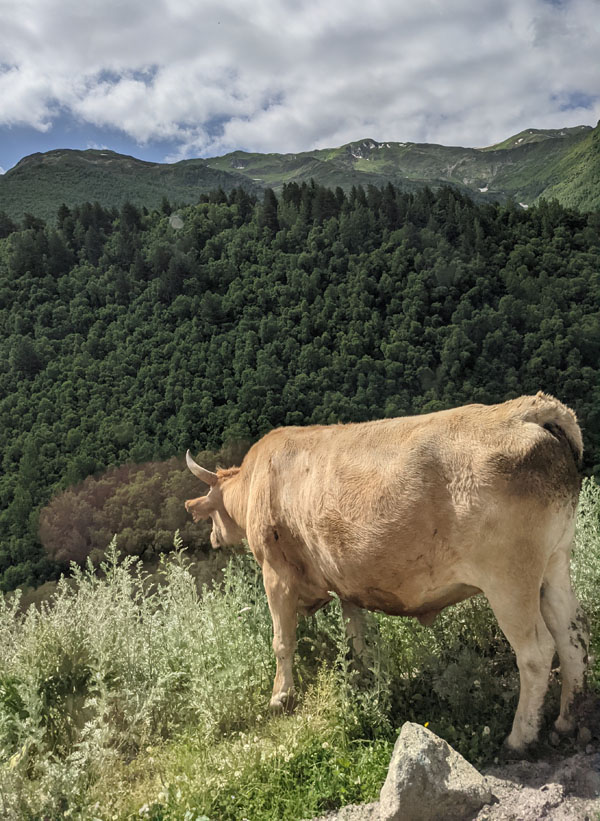 Car des forces, il va falloir en avoir cet après-midi car j’ai décidé de faire la longue randonnée qui doit me mener jusqu’au pied du glacier Shkhara, une des plus hautes montagnes du Caucase. Mais j’y reviendrai plus tard.