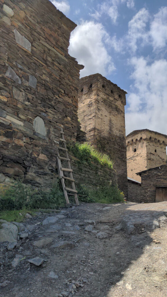 En attendant, nous allons nous balader un instant à travers les rues étroites du village pour découvrir cette forêt incroyable de tours svanes qui la peuple.
