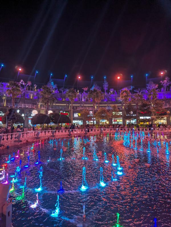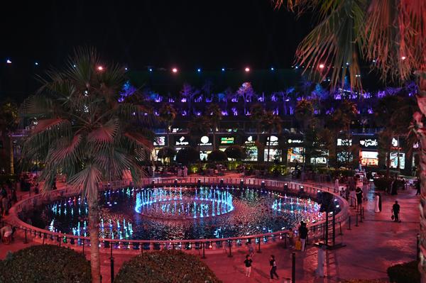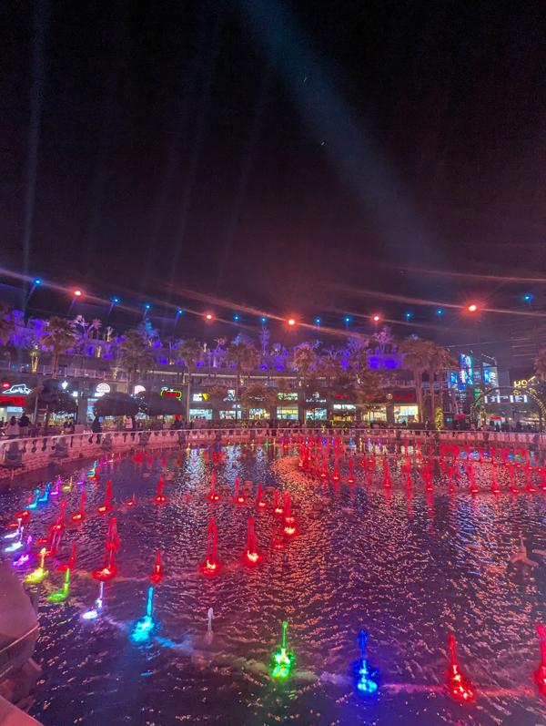 Le site est divisé en neuf sous-zones distinctes, chacune offrant une atmosphère et des attractions particulières. Le cœur du complexe est sans doute la place principale, “The Square”, une réplique animée de Times Square à New York, dominée par des écrans géants qui plongent les visiteurs dans une ambiance résolument urbaine et internationale. On y trouve également le quartier “Trocadero”, inspiré des rues de Londres, et une zone “Japamura” dédiée à la culture japonaise, illustrant la volonté de dépaysement du lieu. Avec plus de 200 magasins, cafés et restaurants, il y a de quoi satisfaire toutes les envies, des marques internationales aux enseignes locales.
