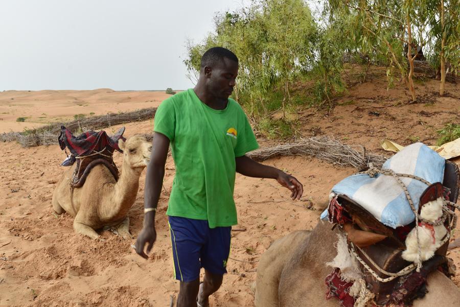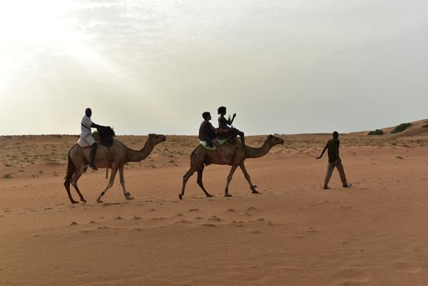 Mercredi 26 septembre. Retour au camp. Après avoir partagé le thé, direction le sommet de la dune qui domine le campement pour une petite balade en méharée.