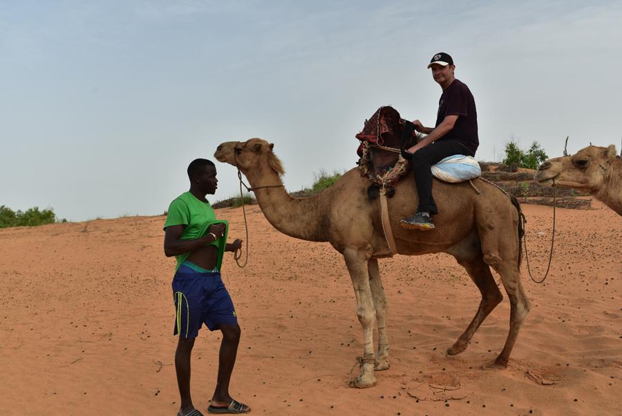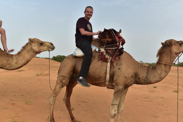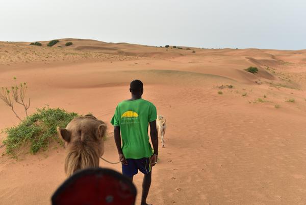 La promenade à dos de dromadaire (une bosse) est une activité incontournable dans le désert de Lompoul. Le must pour beaucoup de touristes. C’est loin d’être la première fois que je me promène sur le dos de cet animal, mais je tiens à ne pas offusquer Yérim qui a mis tout son cœur à préparer mon circuit au Sénégal.