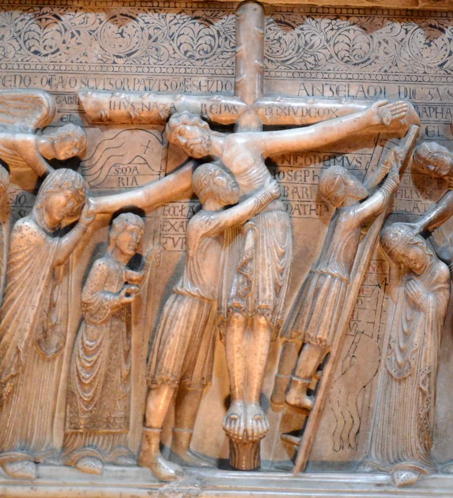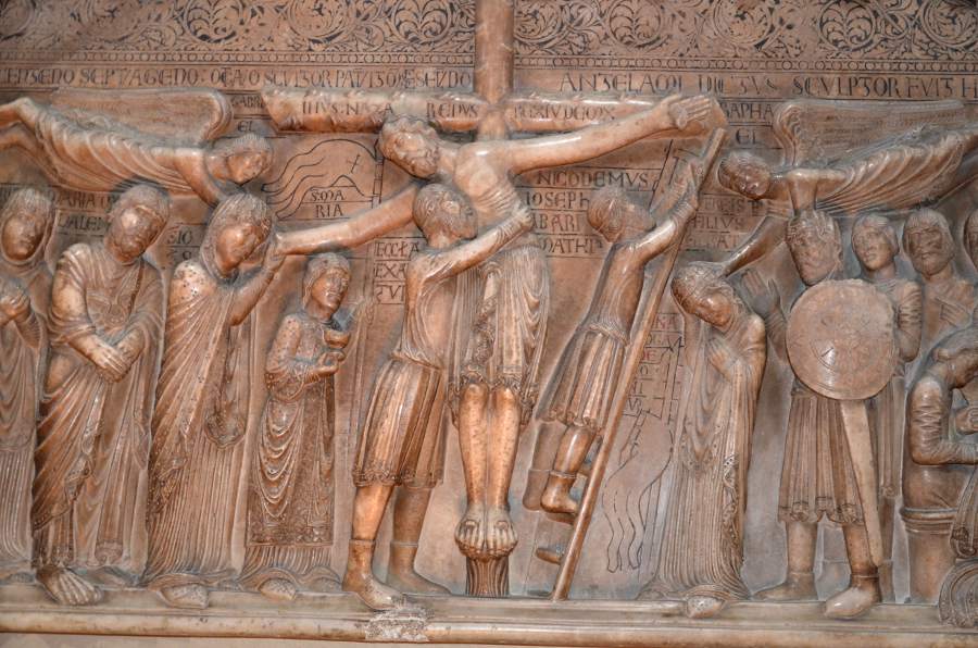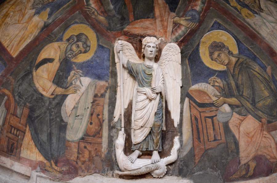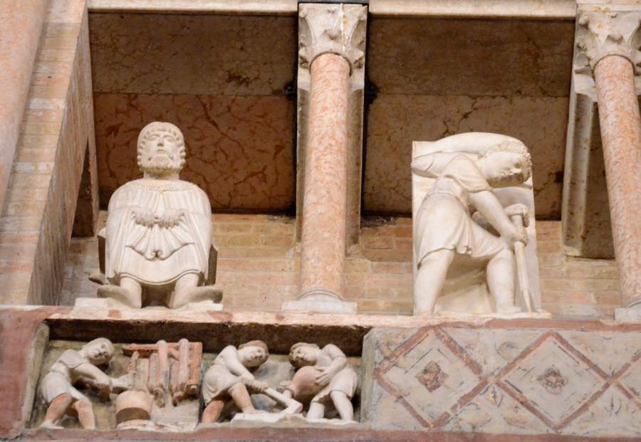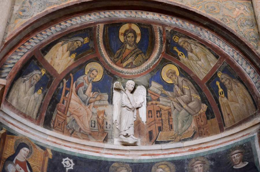 Une fois à l’intérieur, quelle claque ! Les niches et les coupoles sont décorées de fresques du XIIIe, XIVe et XVe siècle, représentant des scènes de la vie du Christ et de ses apôtres. La représentation des mois et des saisons est aussi de toute beauté. À l’extérieur, les sculptures d’Antelami au-dessus des trois portails sont à couper le souffle.