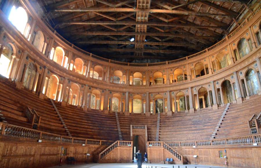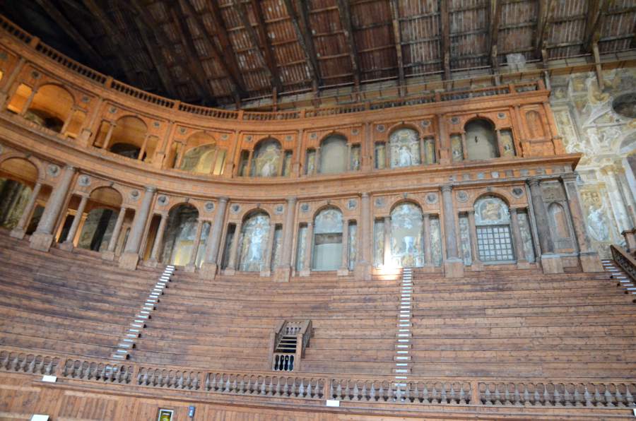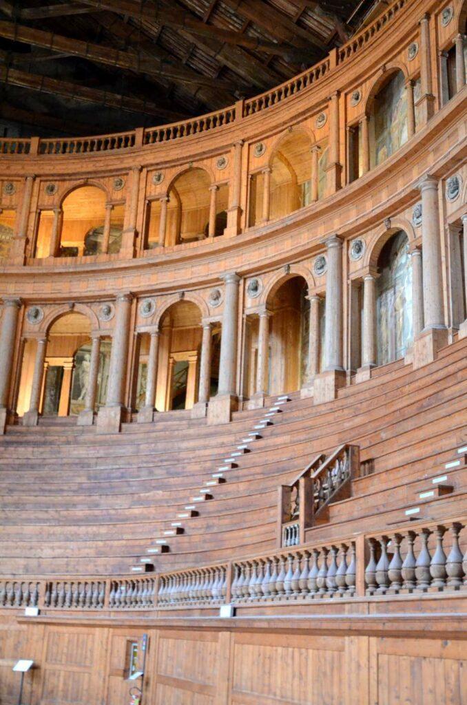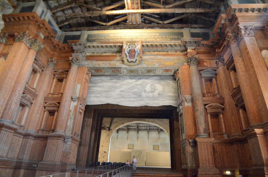 Le Palazzo della Pilota abrite un joyau du XVIIe siècle : le théâtre Farnese. Inauguré en 1628 à l’occasion de l’union entre les Farnese et les Medicis. Sa capacité d’accueil s’élève à 5.000 places assises, soit le plus grand théâtre privé d’Europe pendant de longues années. Deux séries de loges surplombent les gradins. Des niches encadrent la scène. L’ensemble fait de bois et de stuc forme une harmonie parfaite. Depuis la scène, la profondeur de la salle ovoïdale apparaît nettement. Quel spectacle ce devait être lorsque les trois coups étaient donnés.